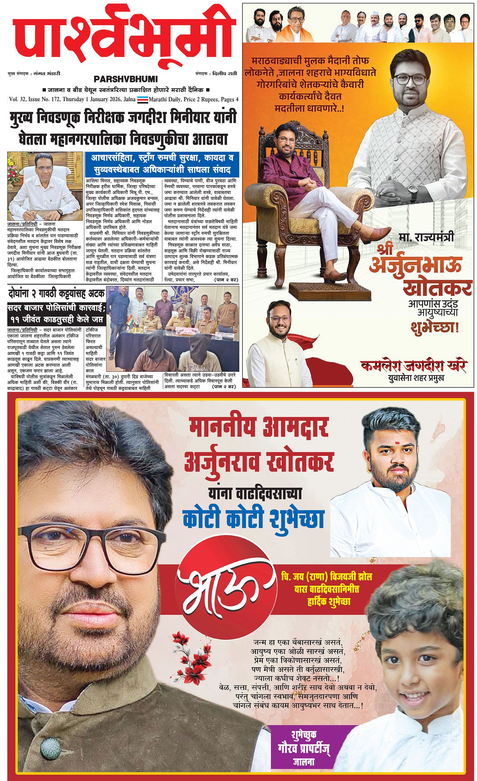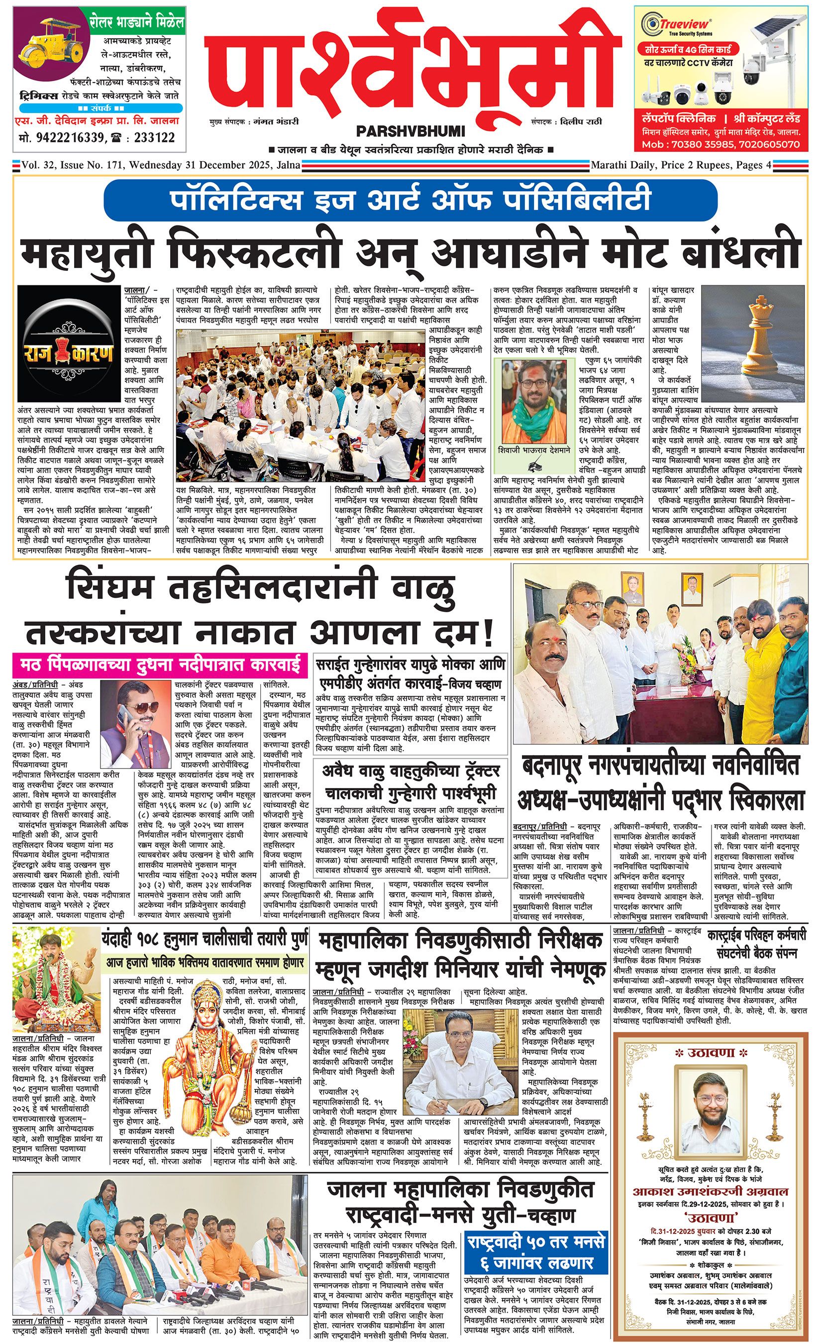 दैनिक पार्श्वभूमी | ‘विधाता’ बिल्डींग, आय. एम. ए. हॉलच्या पाठीमागे, प्रियदर्शनी कॉलनी, संभाजीनगर, जालना | ई-मेल : [email protected] | मो. 9860017155 Page 1 Page 2 Page 3 Page 4 Thursday, 1 January 2026