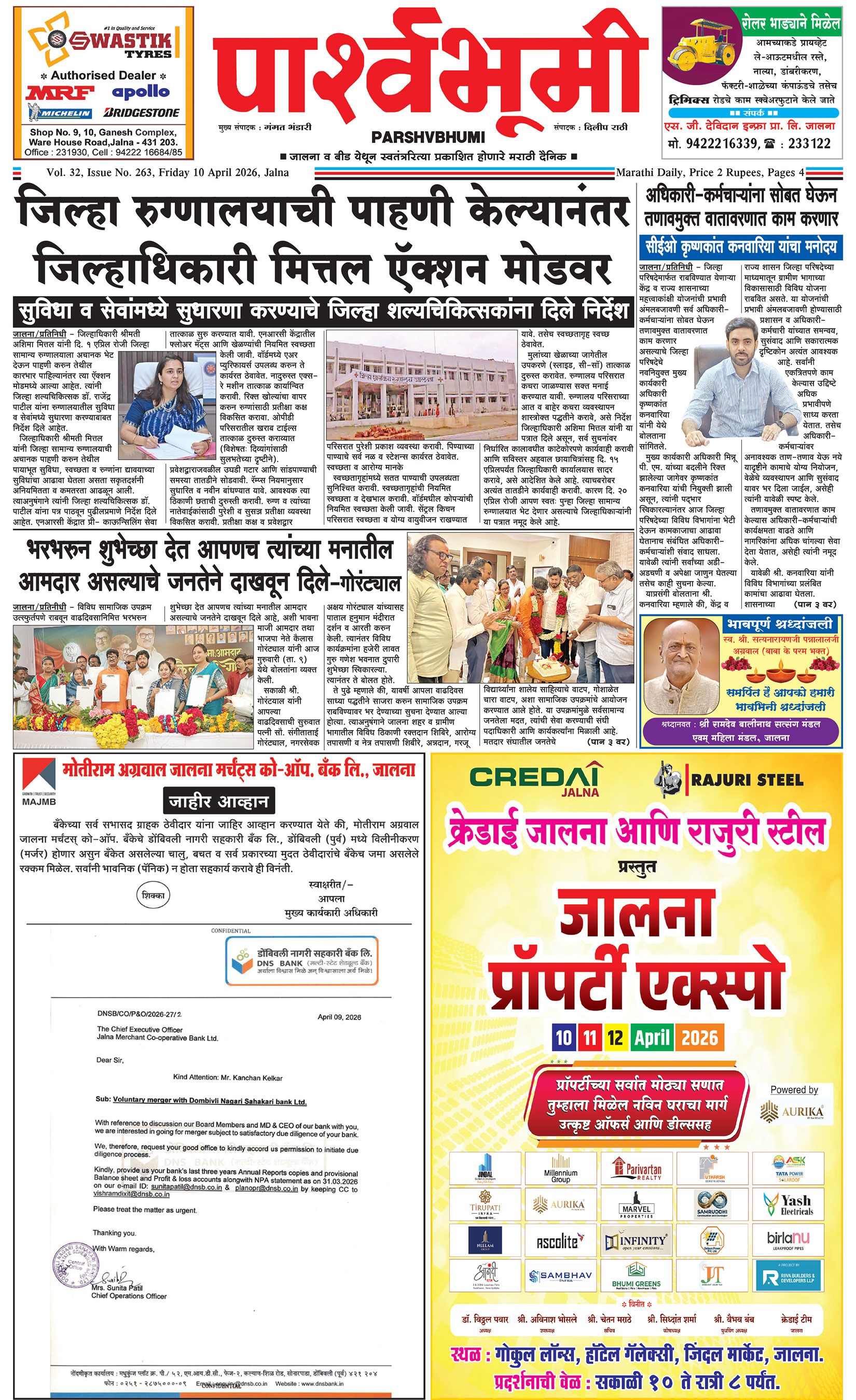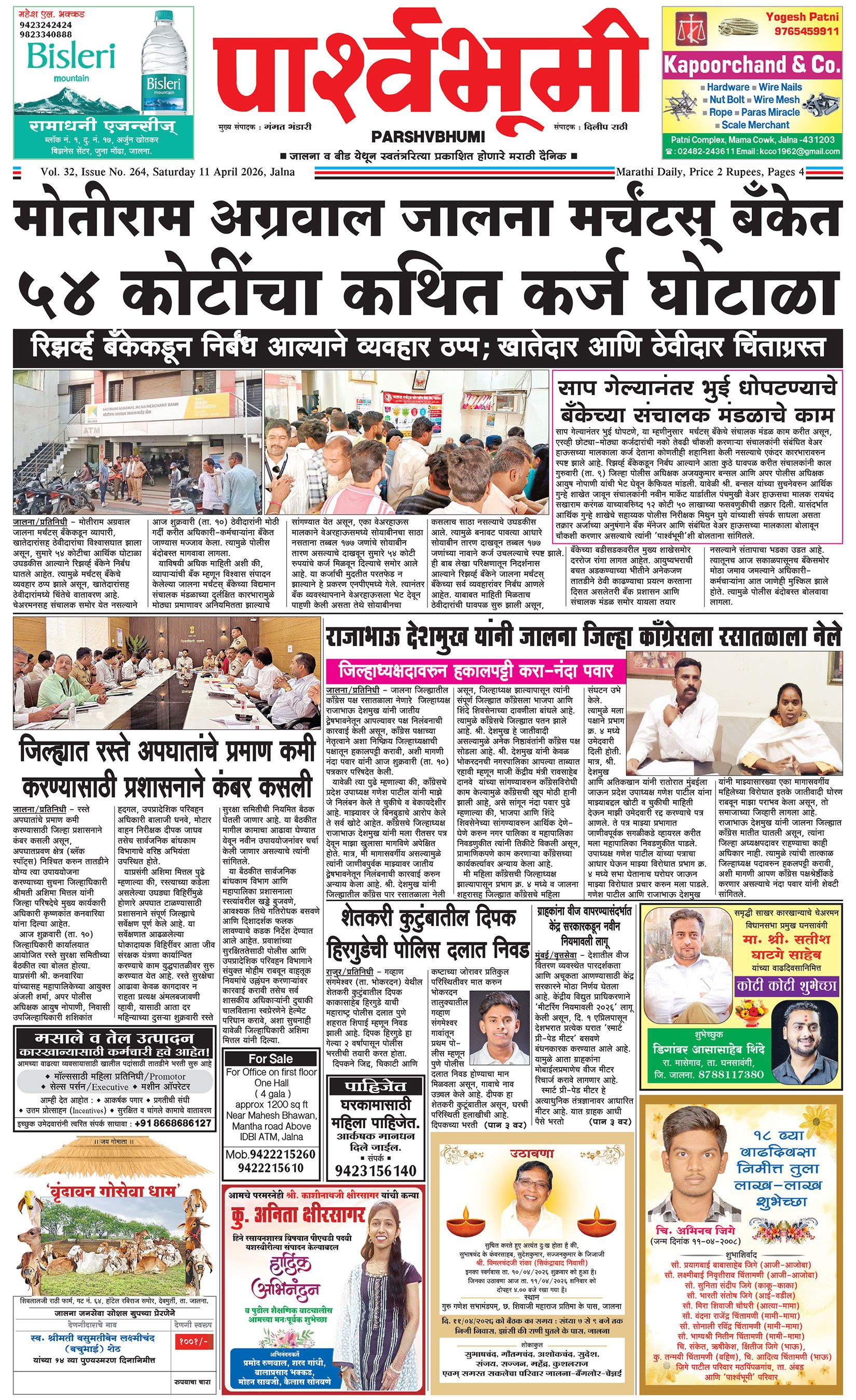 दैनिक पार्श्वभूमी | ‘विधाता’ बिल्डींग, आय. एम. ए. हॉलच्या पाठीमागे, प्रियदर्शनी कॉलनी, संभाजीनगर, जालना | ई-मेल : [email protected] | मो. 9860017155 Page 1 Page 2 Page 3 Page 4 Saturday, 11 April 2026