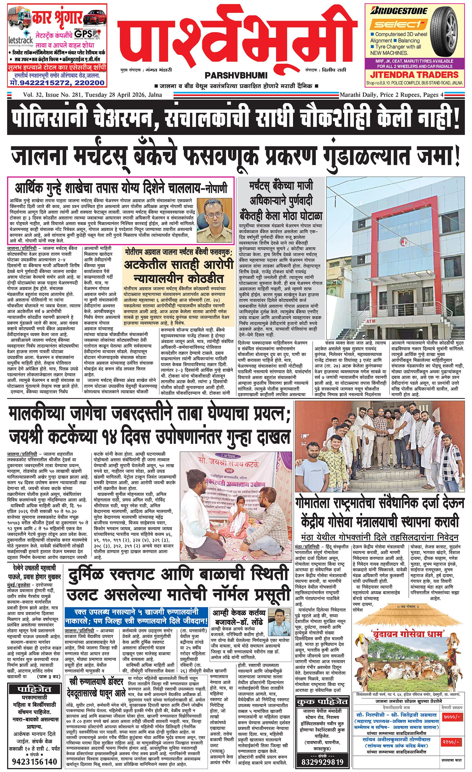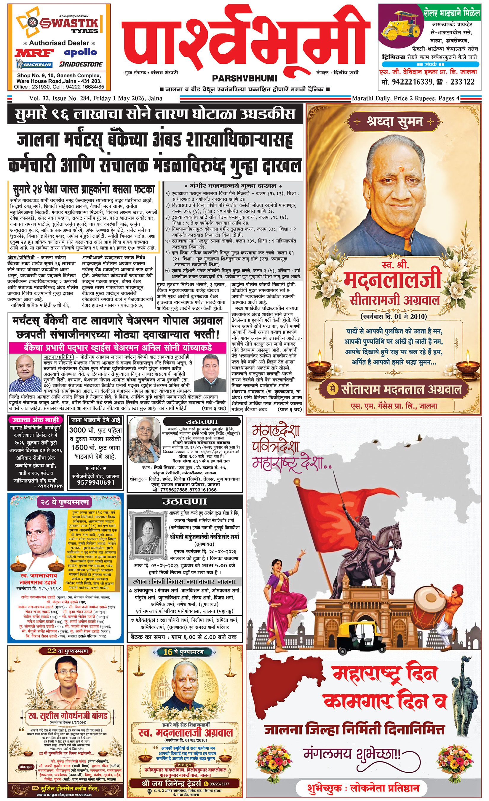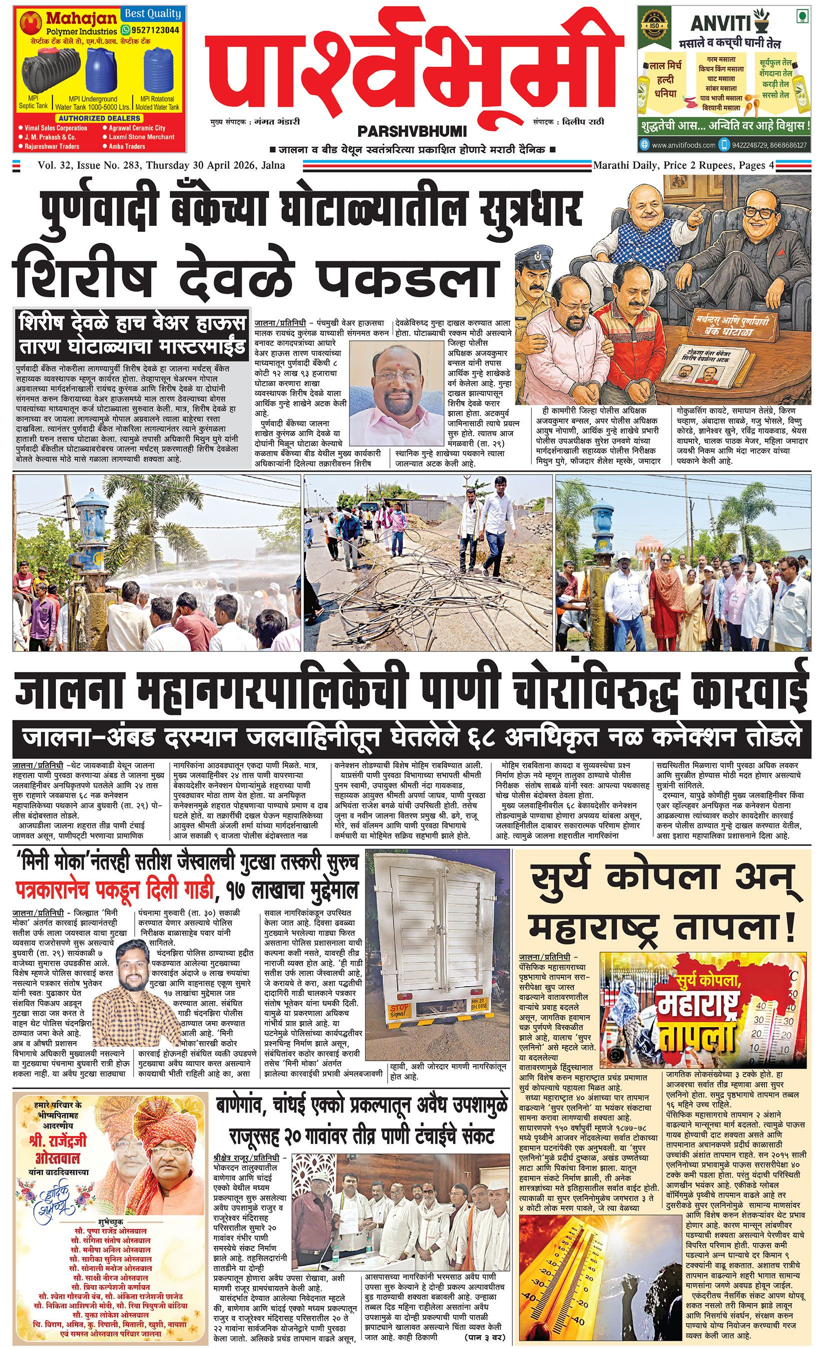 दैनिक पार्श्वभूमी | ‘विधाता’ बिल्डींग, आय. एम. ए. हॉलच्या पाठीमागे, प्रियदर्शनी कॉलनी, संभाजीनगर, जालना | ई-मेल : [email protected] | मो. 9860017155 Page 1 Page 2 Page 3 Page 4 Wednesday, 29 April 2026