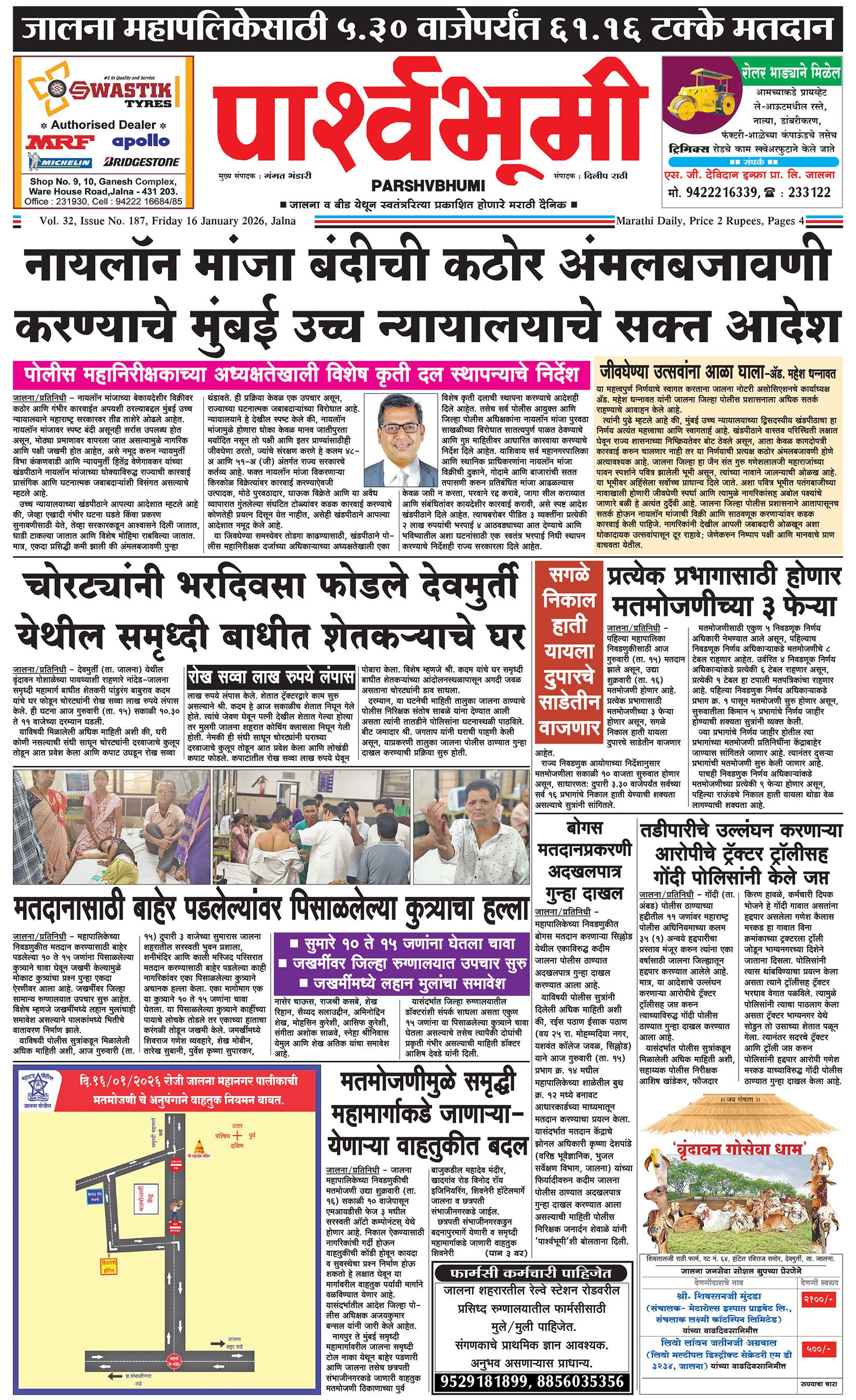 दैनिक पार्श्वभूमी | ‘विधाता’ बिल्डींग, आय. एम. ए. हॉलच्या पाठीमागे, प्रियदर्शनी कॉलनी, संभाजीनगर, जालना | ई-मेल : [email protected] | मो. 9860017155 Page 1 Page 2 Page 3 Page 4 Saturday, 17 January 2026