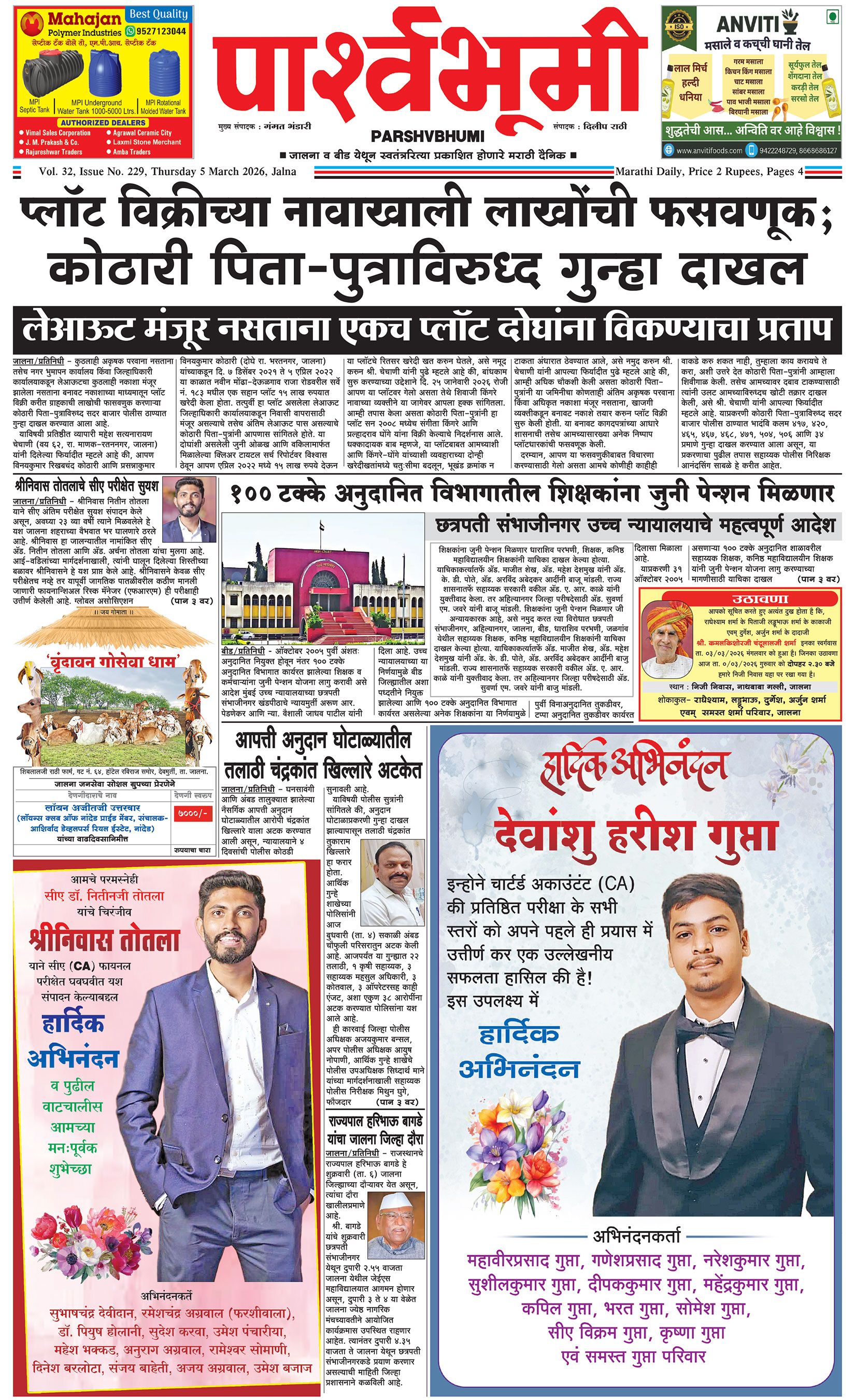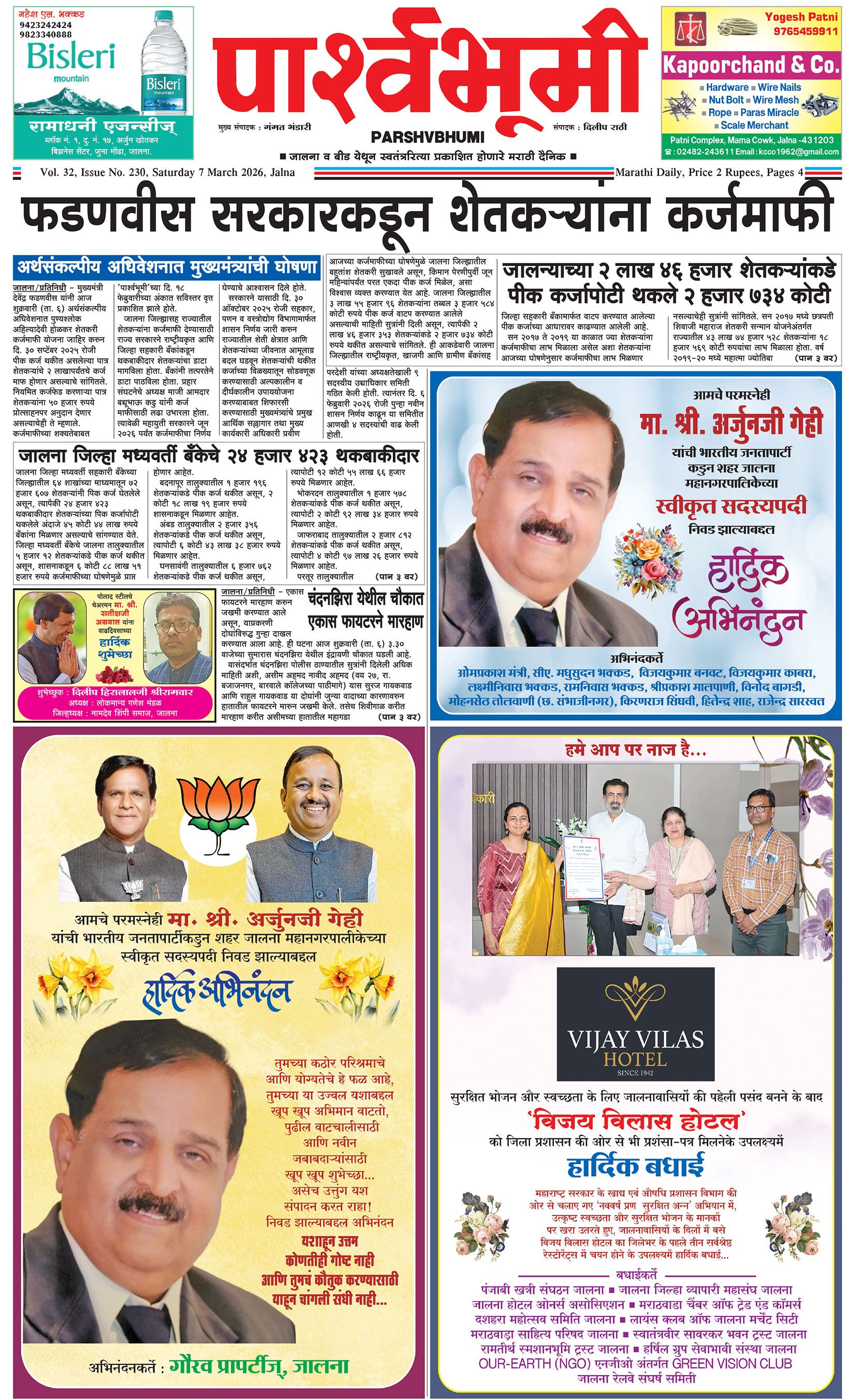 दैनिक पार्श्वभूमी | ‘विधाता’ बिल्डींग, आय. एम. ए. हॉलच्या पाठीमागे, प्रियदर्शनी कॉलनी, संभाजीनगर, जालना | ई-मेल : [email protected] | मो. 9860017155 Page 1 Page 2 Page 3 Page 4 Friday, 6 March 2026
