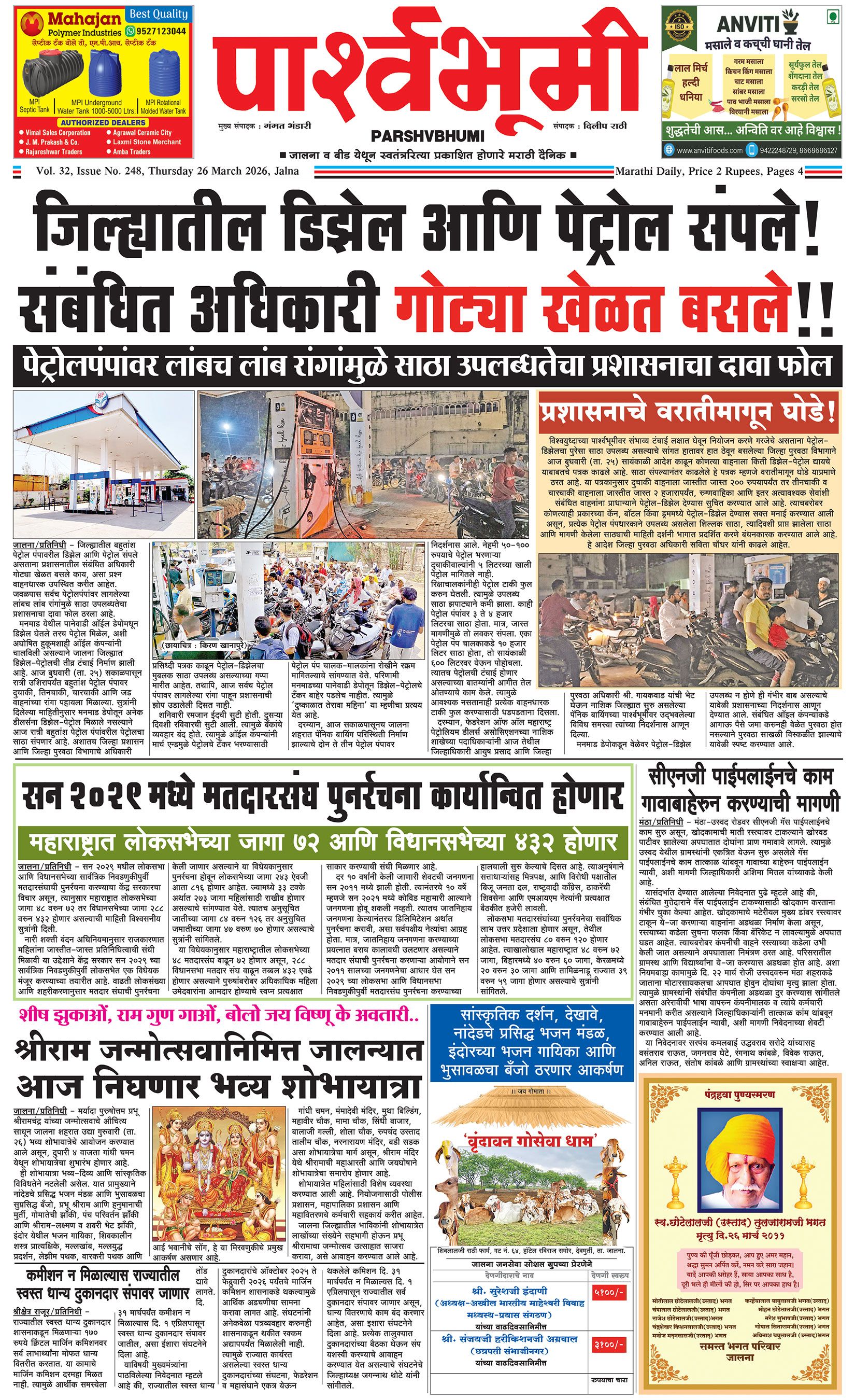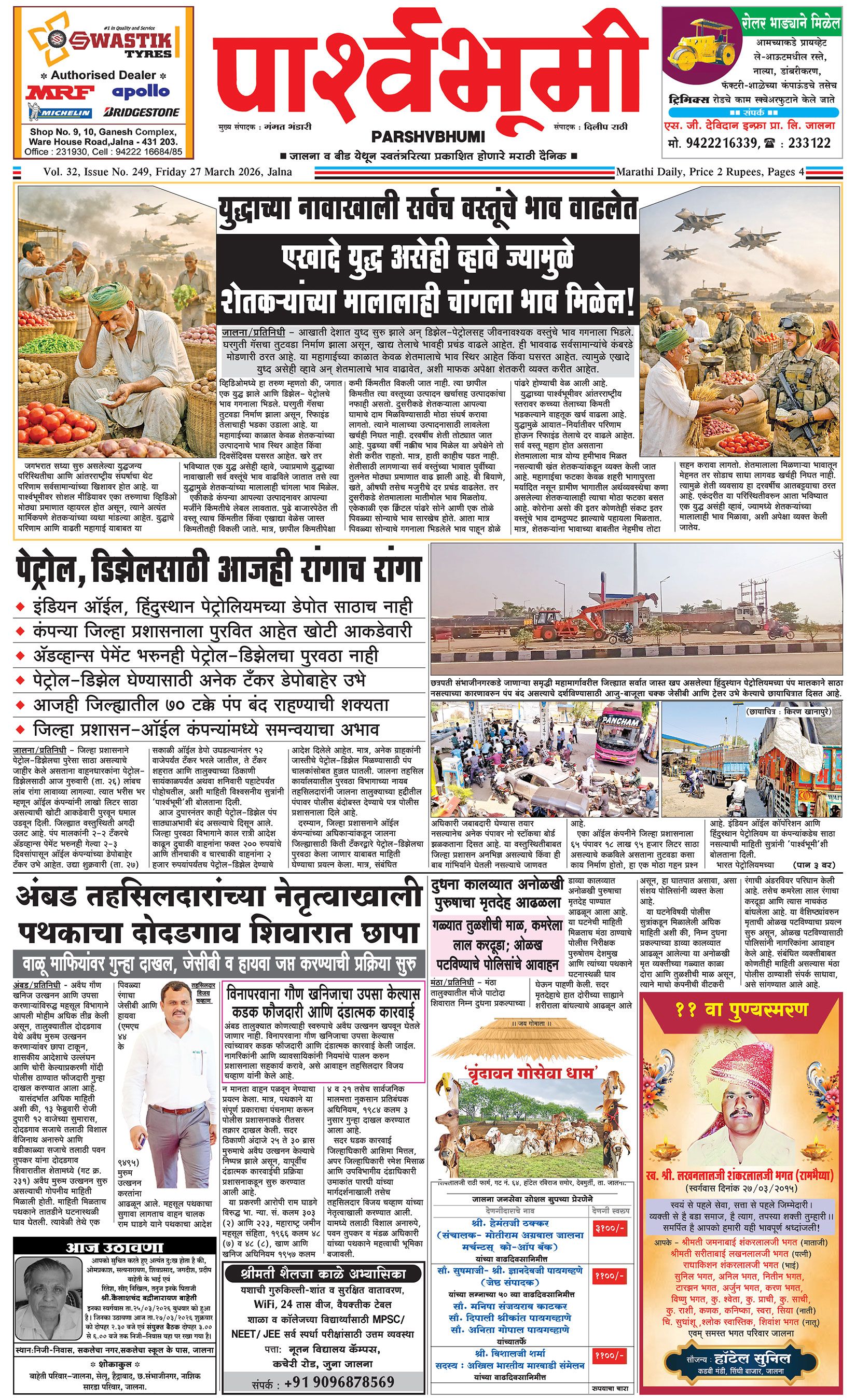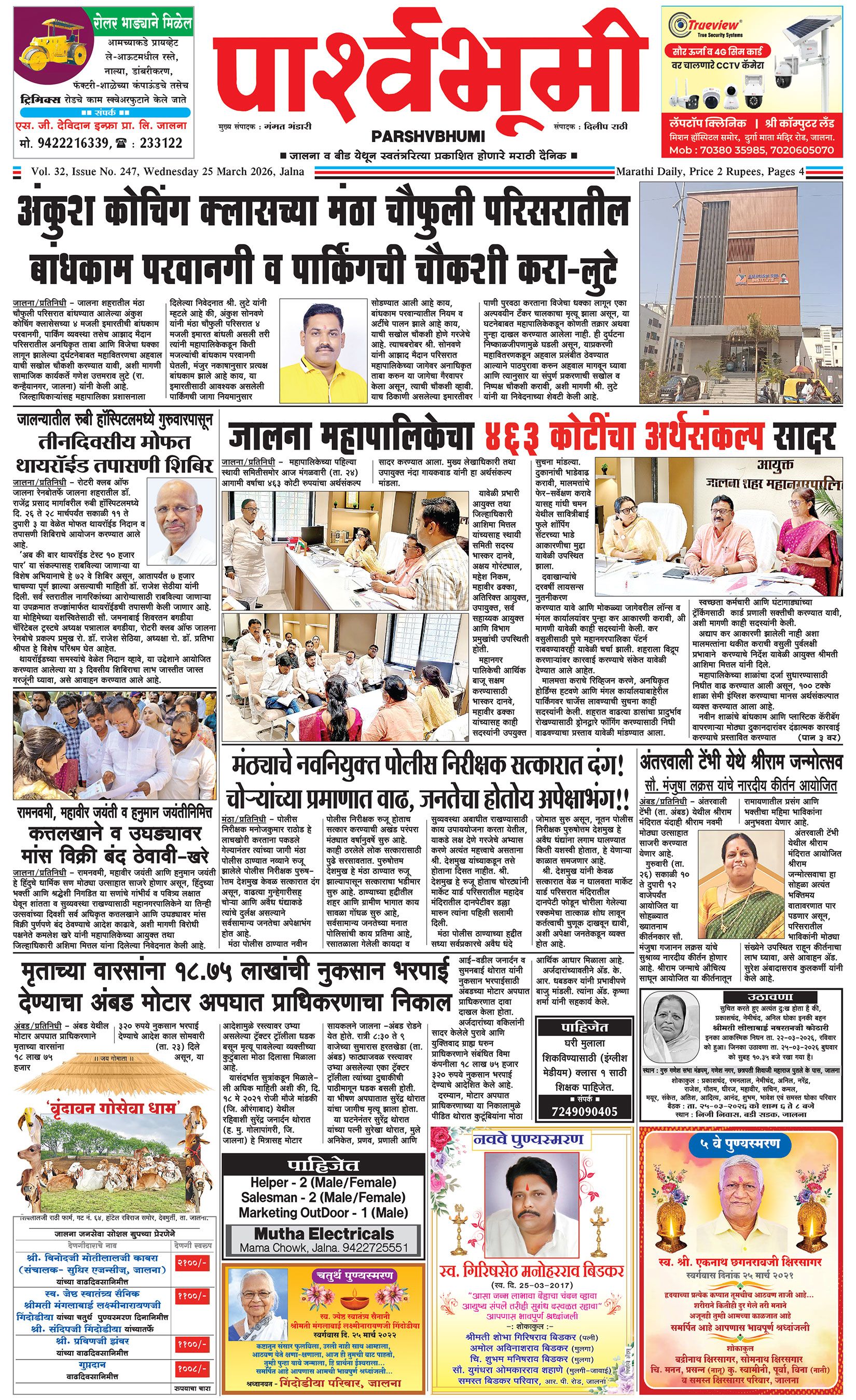 दैनिक पार्श्वभूमी | ‘विधाता’ बिल्डींग, आय. एम. ए. हॉलच्या पाठीमागे, प्रियदर्शनी कॉलनी, संभाजीनगर, जालना | ई-मेल : [email protected] | मो. 9860017155 Page 1 Page 2 Page 3 Page 4 Thursday, 26 March 2026