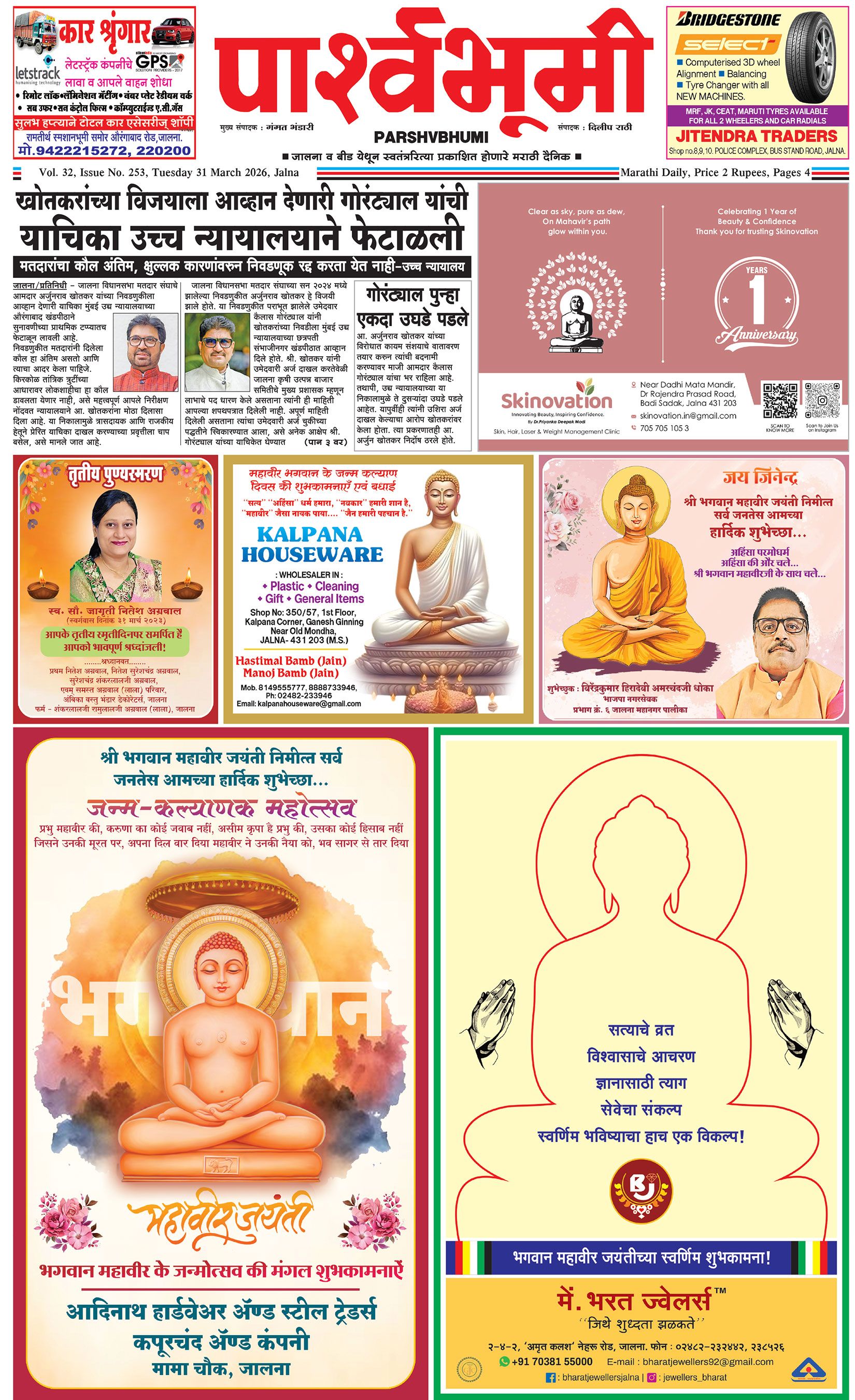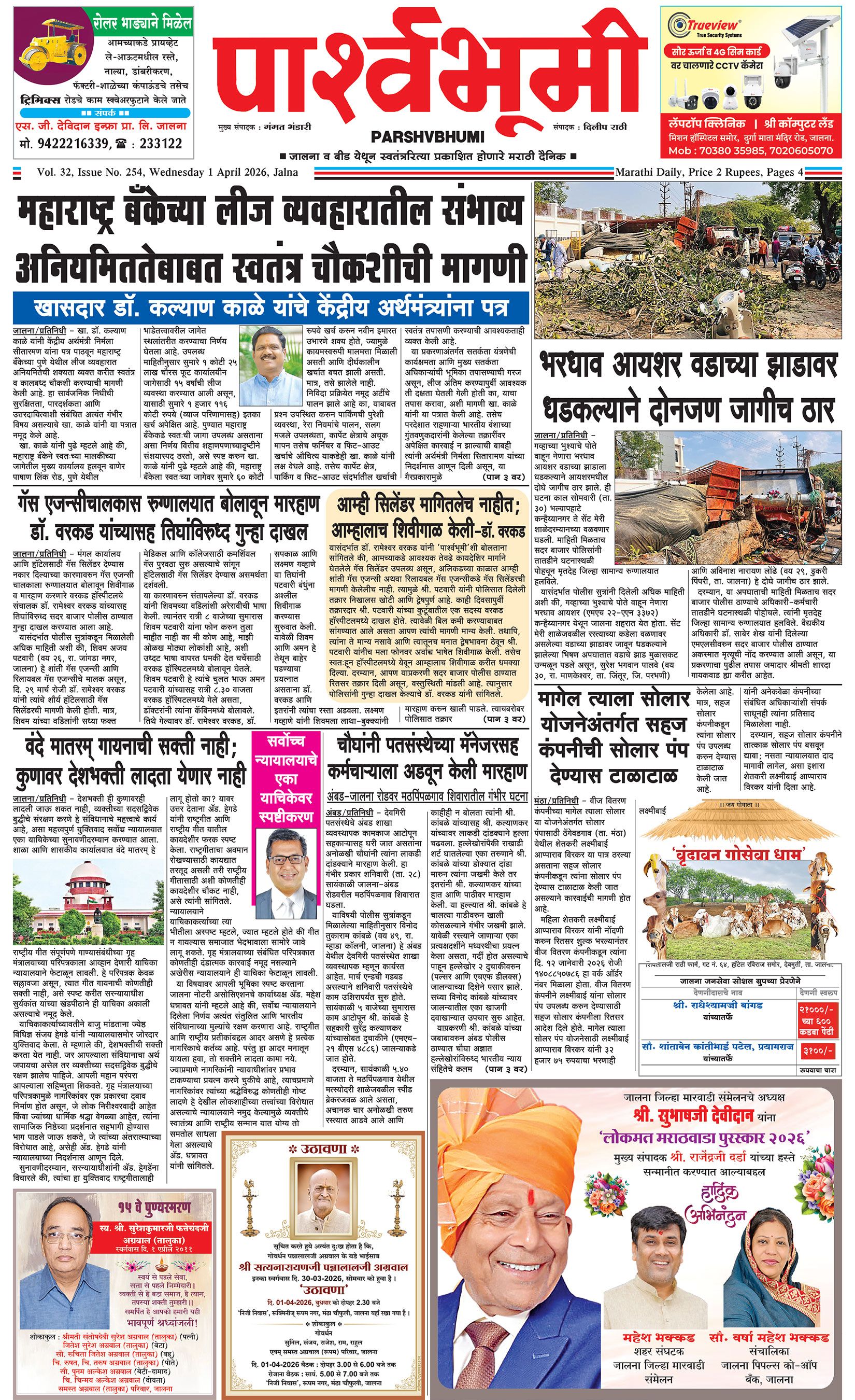 दैनिक पार्श्वभूमी | ‘विधाता’ बिल्डींग, आय. एम. ए. हॉलच्या पाठीमागे, प्रियदर्शनी कॉलनी, संभाजीनगर, जालना | ई-मेल : [email protected] | मो. 9860017155 Page 1 Page 2 Page 3 Page 4 Tuesday, 31 March 2026