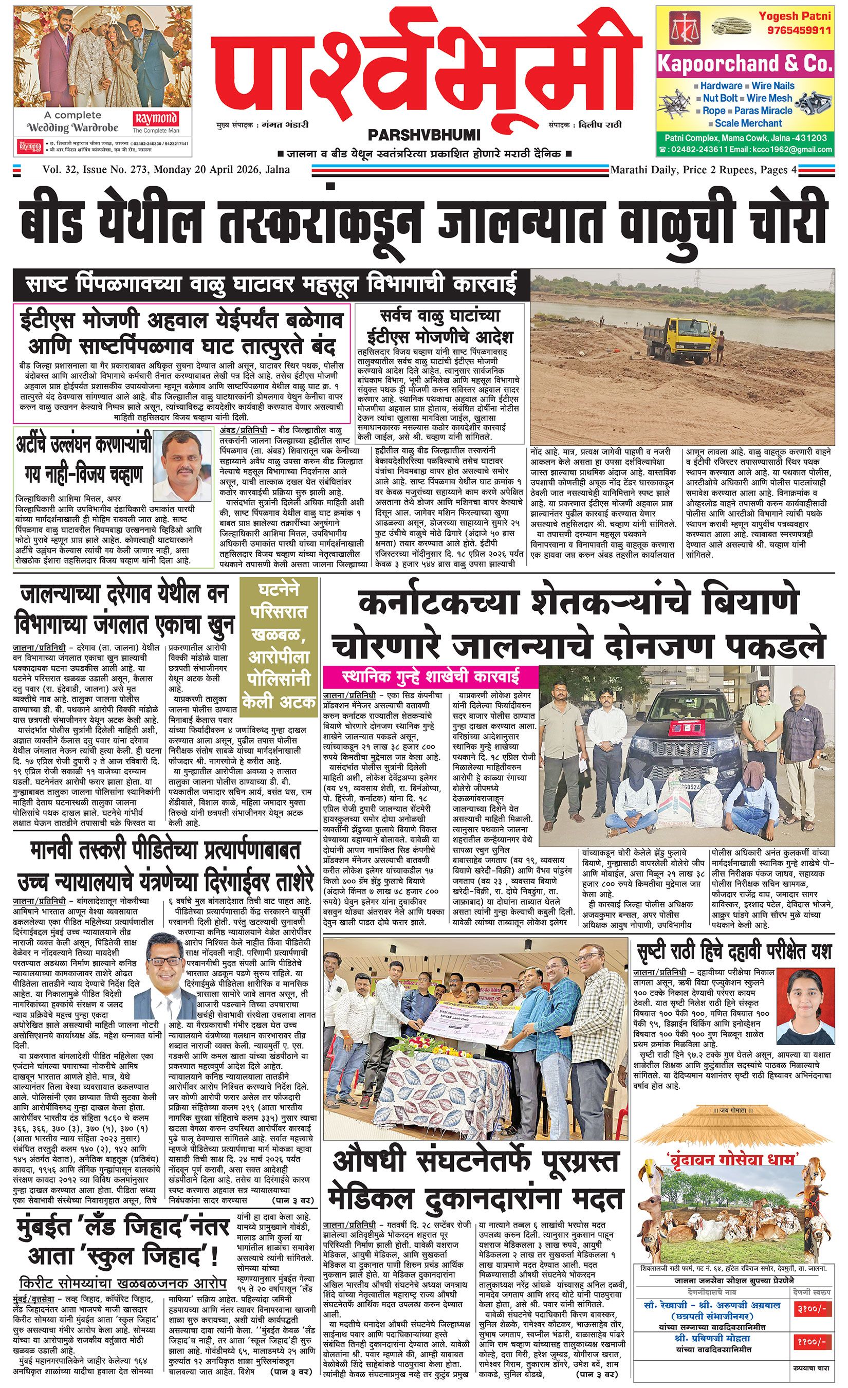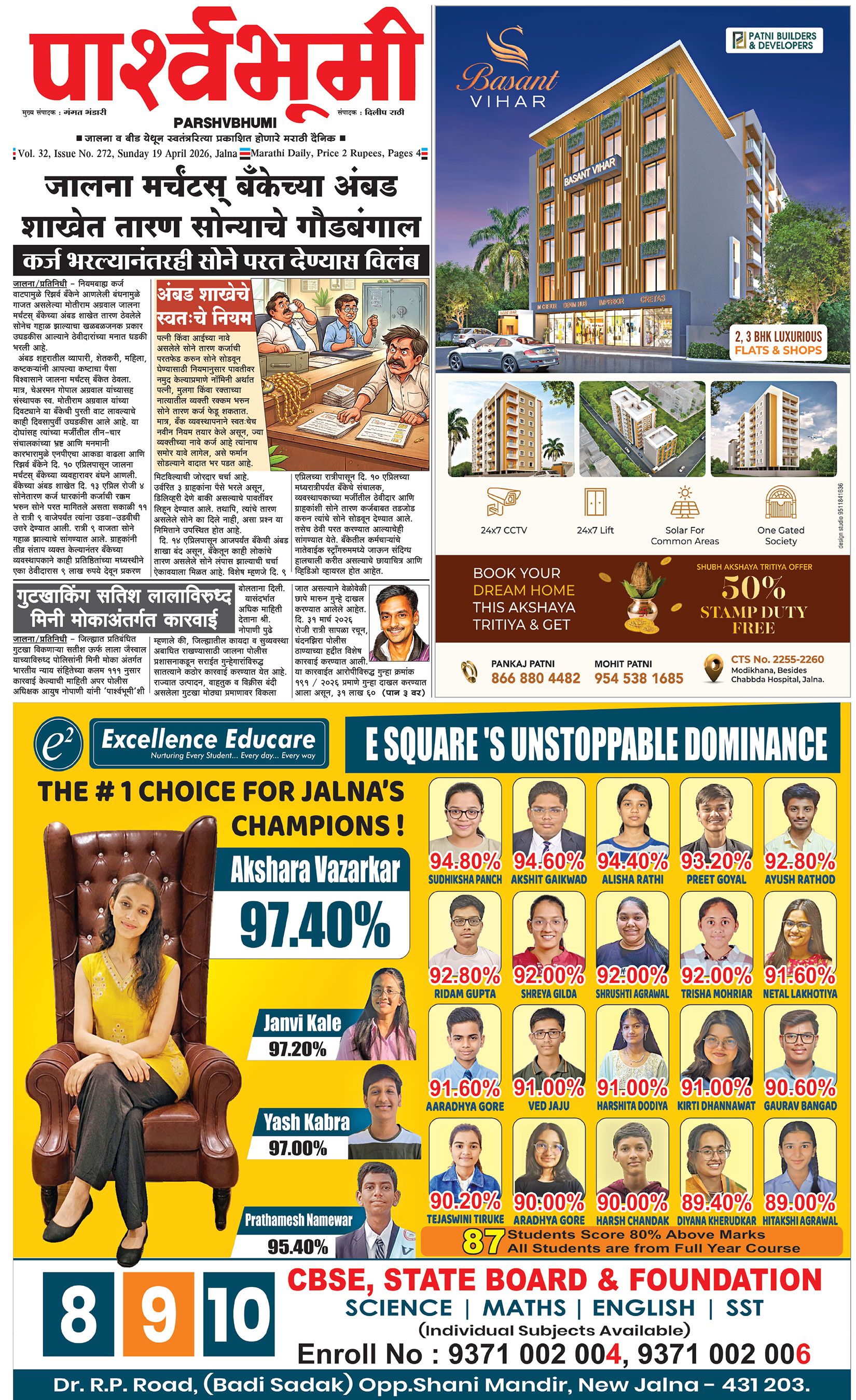 दैनिक पार्श्वभूमी | ‘विधाता’ बिल्डींग, आय. एम. ए. हॉलच्या पाठीमागे, प्रियदर्शनी कॉलनी, संभाजीनगर, जालना | ई-मेल : [email protected] | मो. 9860017155 Page 1 Page 2 Page 3 Page 4 Sunday, 19 April 2026