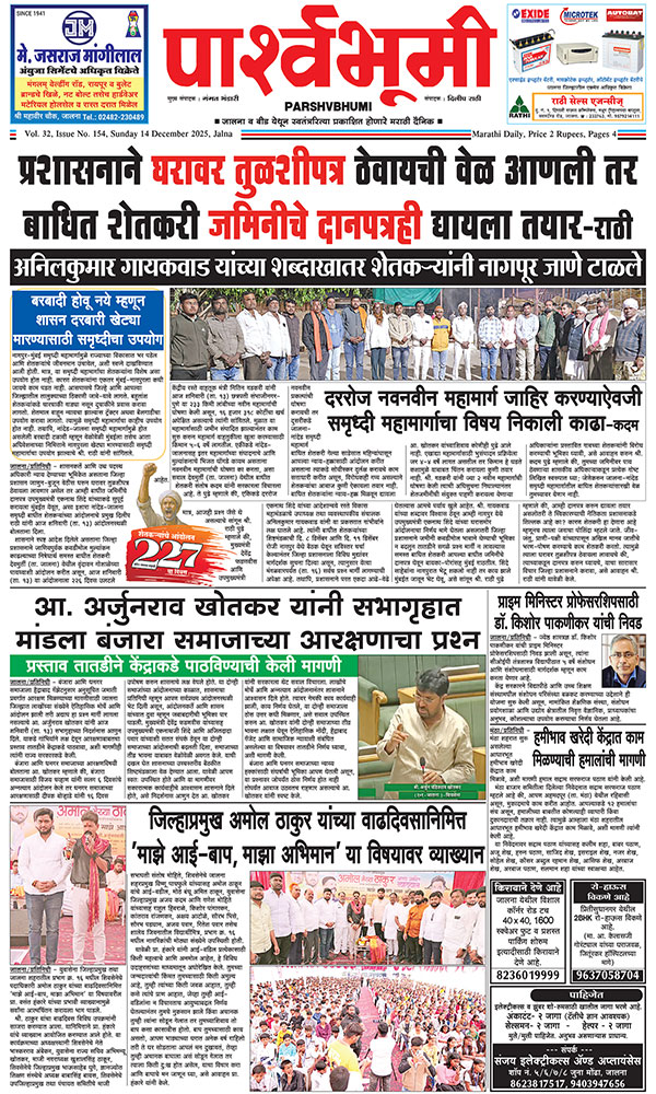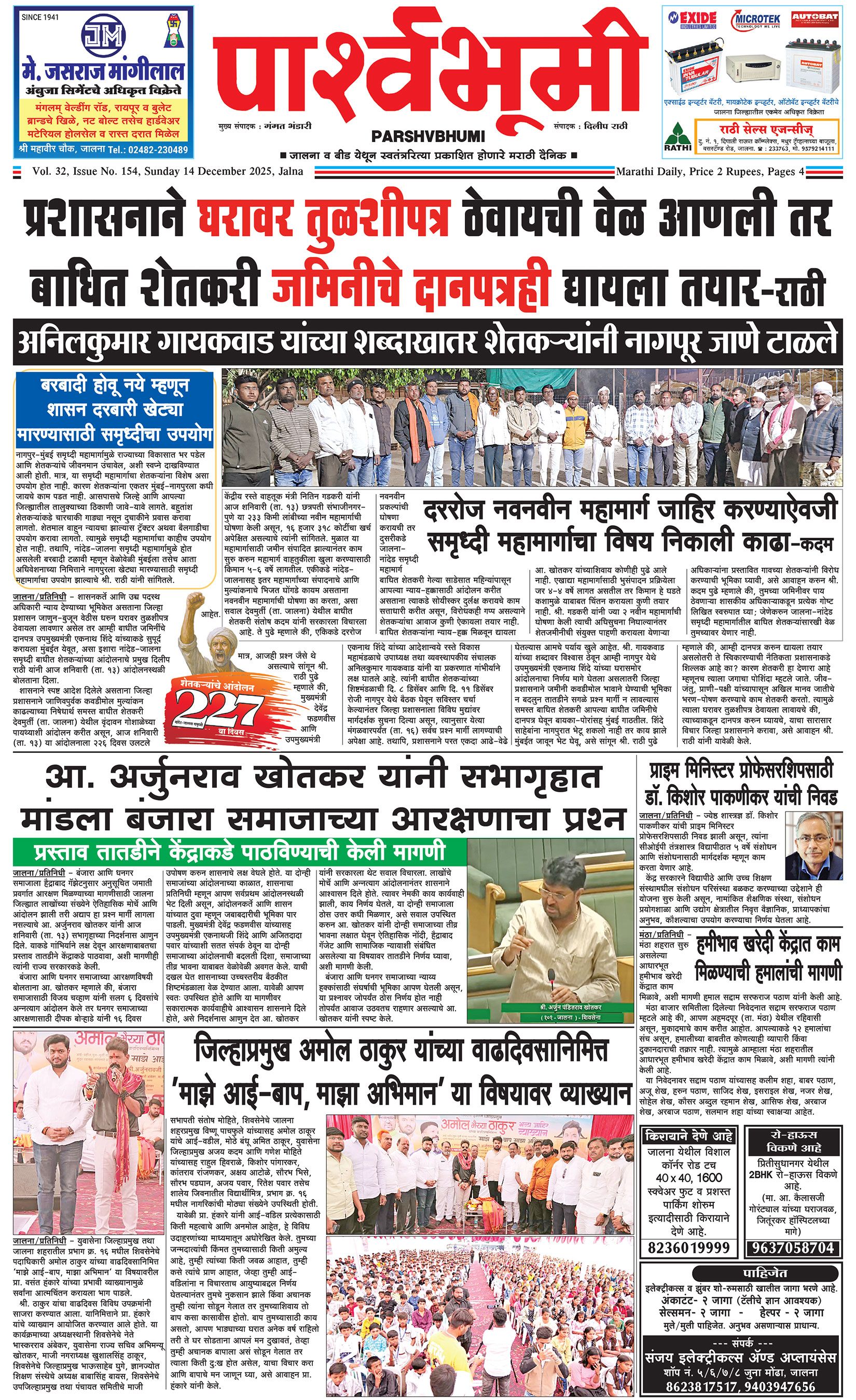 दैनिक पार्श्वभूमी | ‘विधाता’ बिल्डींग, आय. एम. ए. हॉलच्या पाठीमागे, प्रियदर्शनी कॉलनी, संभाजीनगर, जालना | ई-मेल : [email protected] | मो. 9860017155 Page 1 Page 2 Page 3 Page 4 Sunday, 14 December 2025