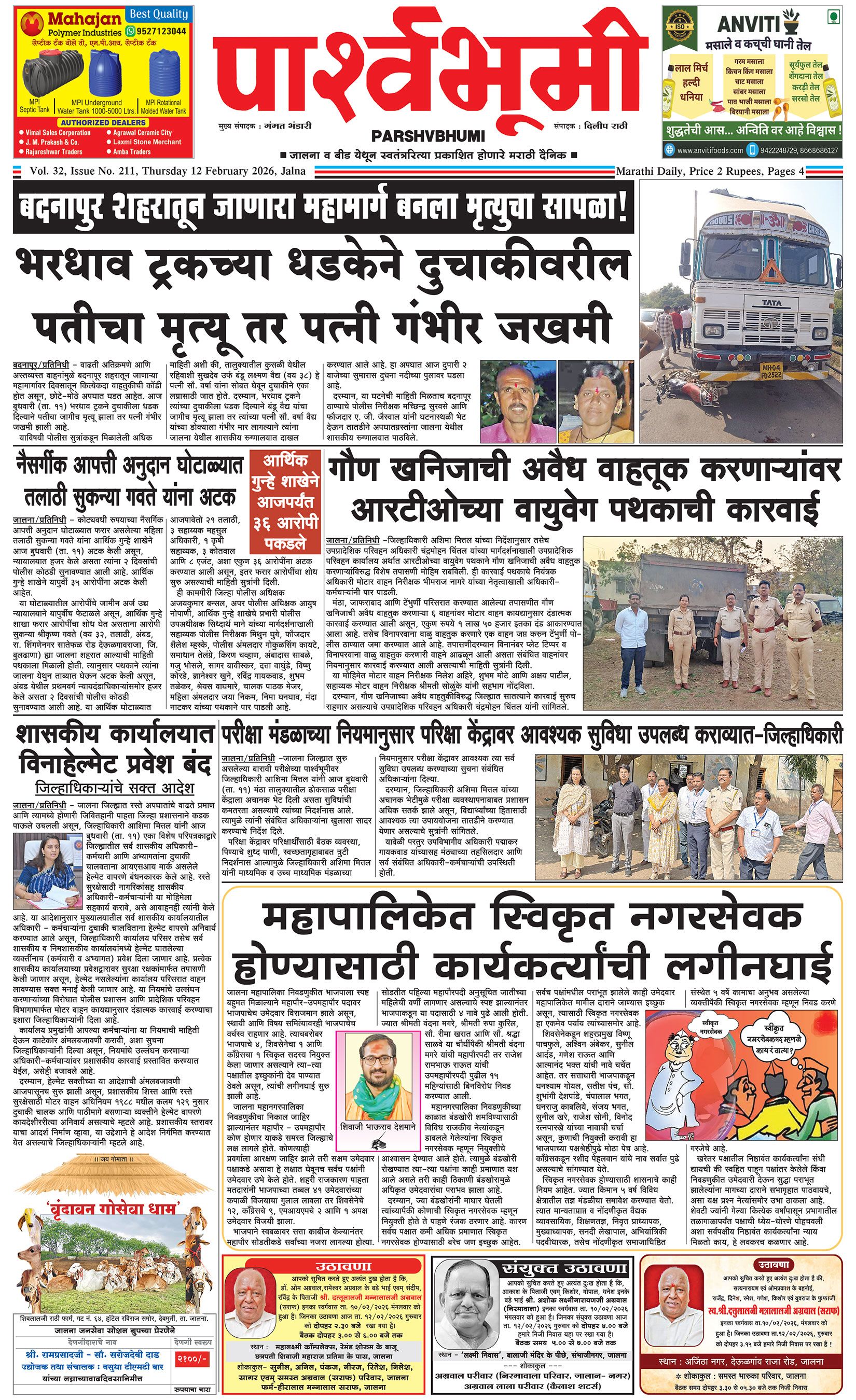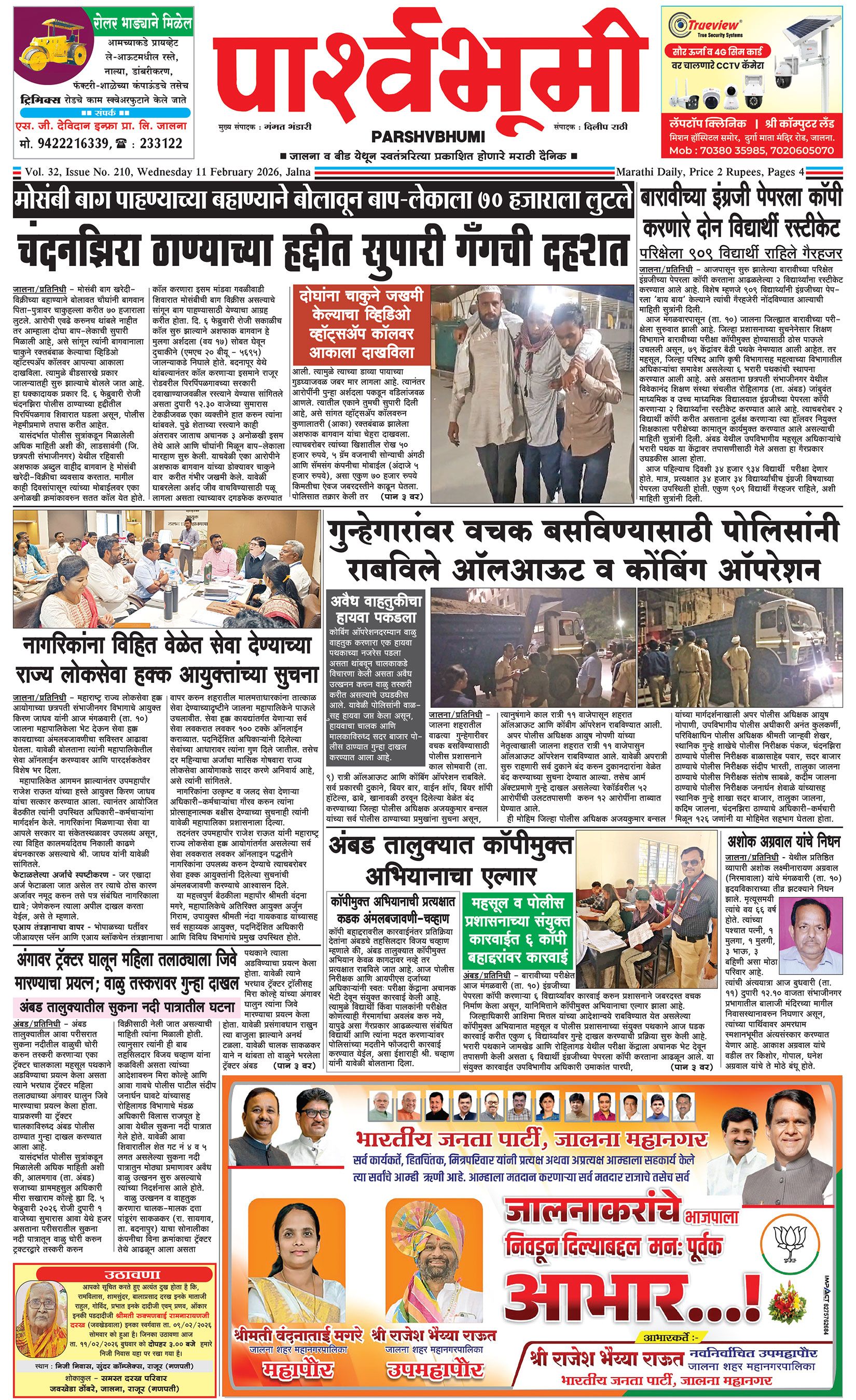 दैनिक पार्श्वभूमी | ‘विधाता’ बिल्डींग, आय. एम. ए. हॉलच्या पाठीमागे, प्रियदर्शनी कॉलनी, संभाजीनगर, जालना | ई-मेल : [email protected] | मो. 9860017155 Page 1 Page 2 Page 3 Page 4 Wednesday, 11 February 2026