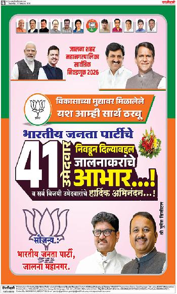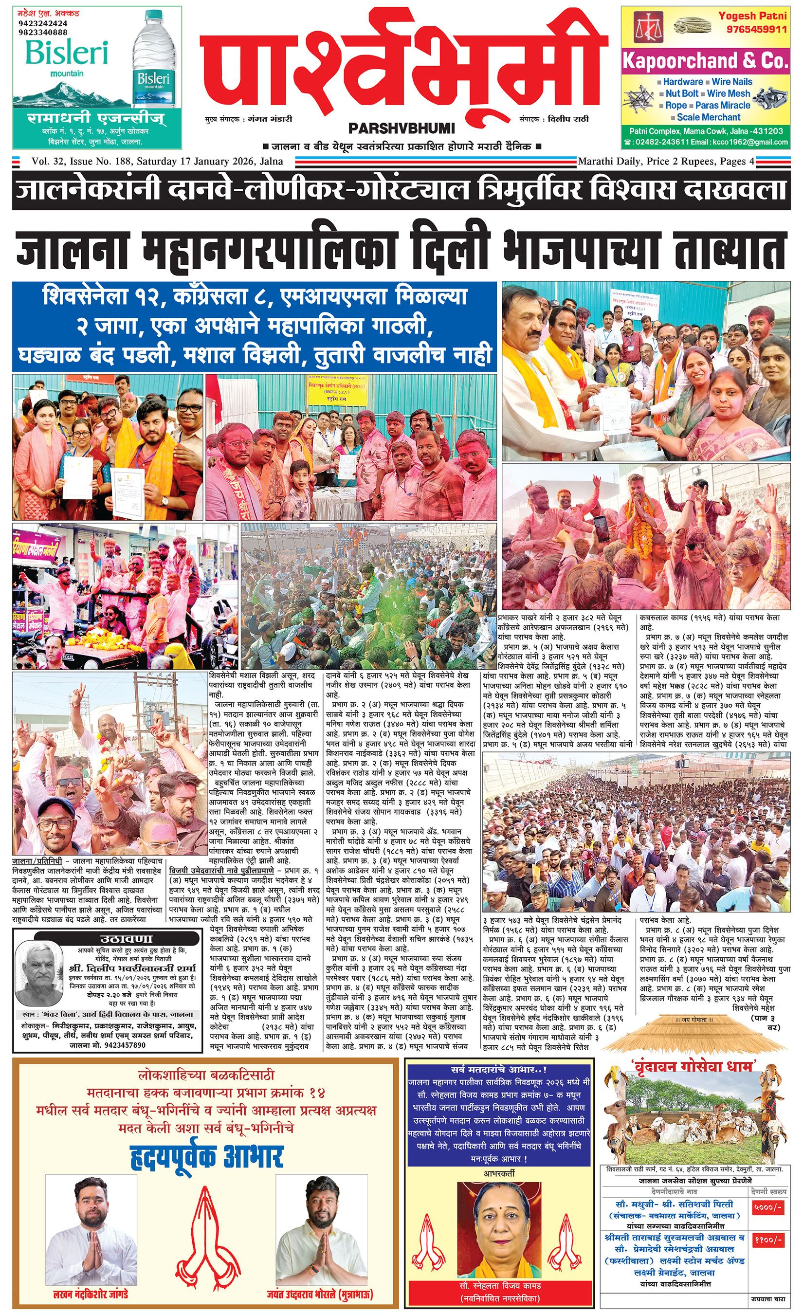 दैनिक पार्श्वभूमी | ‘विधाता’ बिल्डींग, आय. एम. ए. हॉलच्या पाठीमागे, प्रियदर्शनी कॉलनी, संभाजीनगर, जालना | ई-मेल : [email protected] | मो. 9860017155 Page 1 Page 2 Page 3 Page 4 Sunday, 18 January 2026