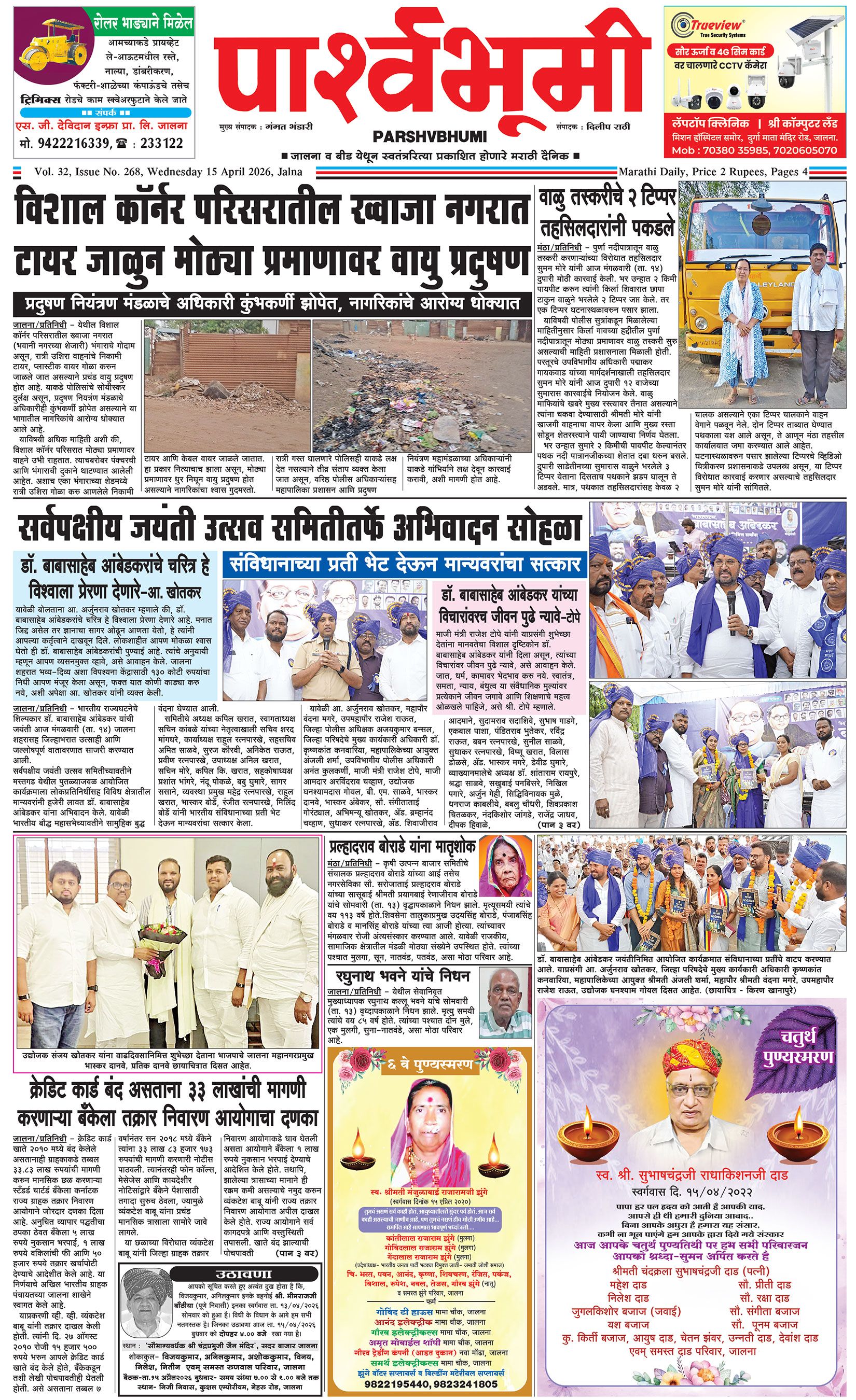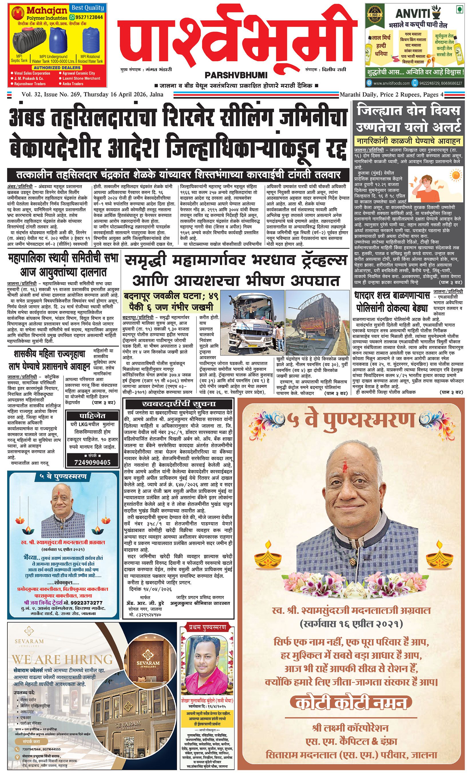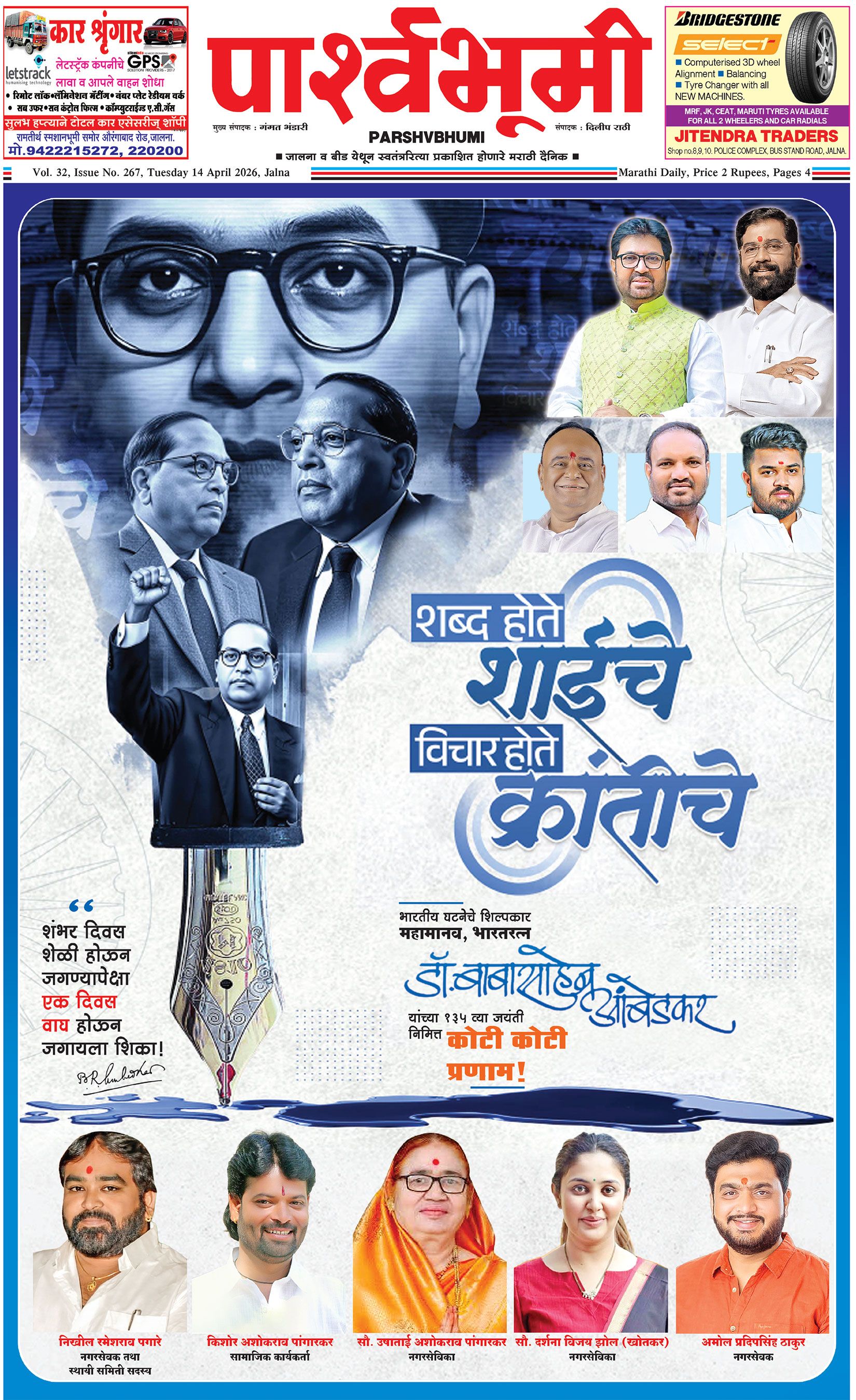 दैनिक पार्श्वभूमी | ‘विधाता’ बिल्डींग, आय. एम. ए. हॉलच्या पाठीमागे, प्रियदर्शनी कॉलनी, संभाजीनगर, जालना | ई-मेल : [email protected] | मो. 9860017155 Page 1 Page 2 Page 3 Page 4 Wednesday, 15 April 2026