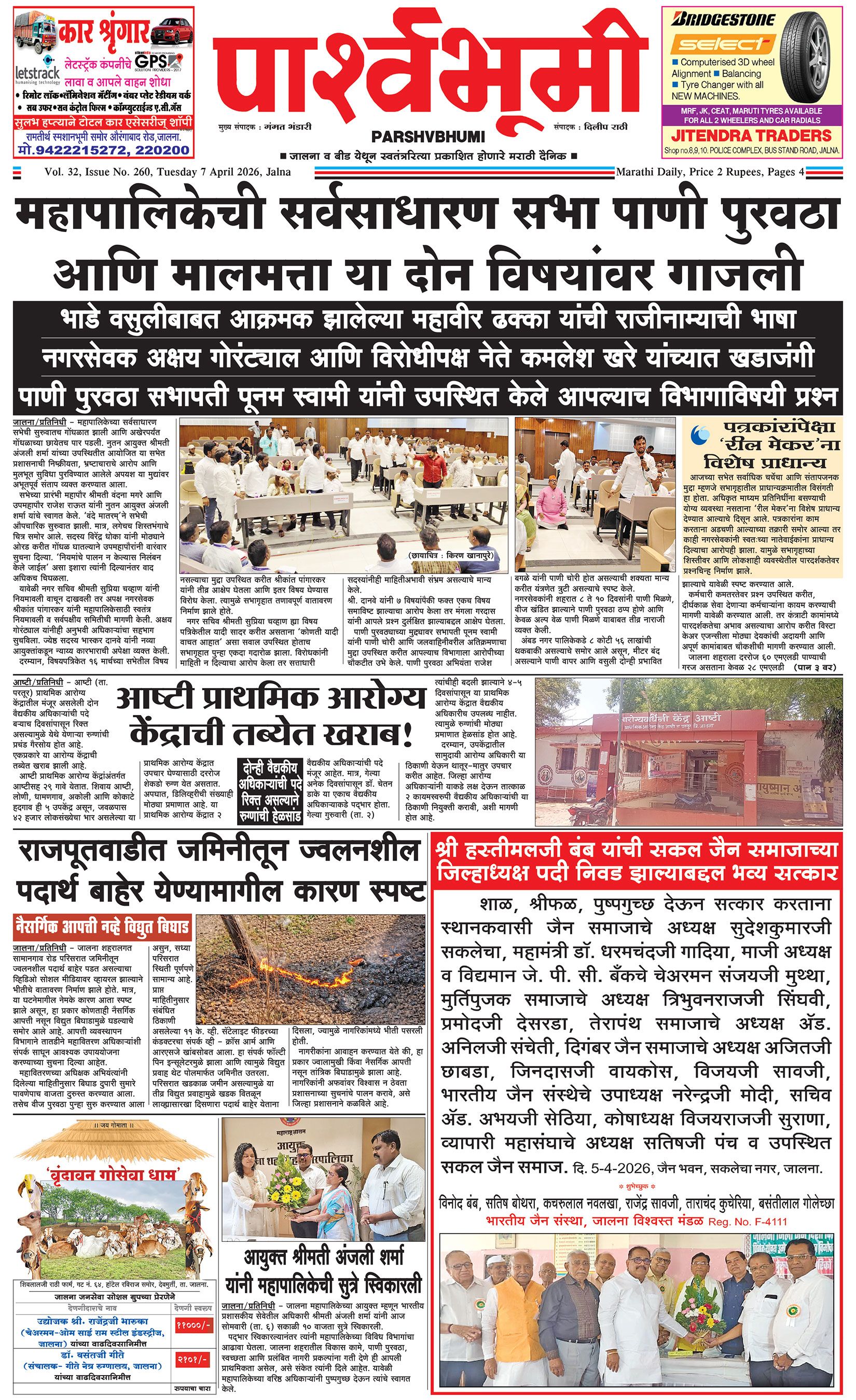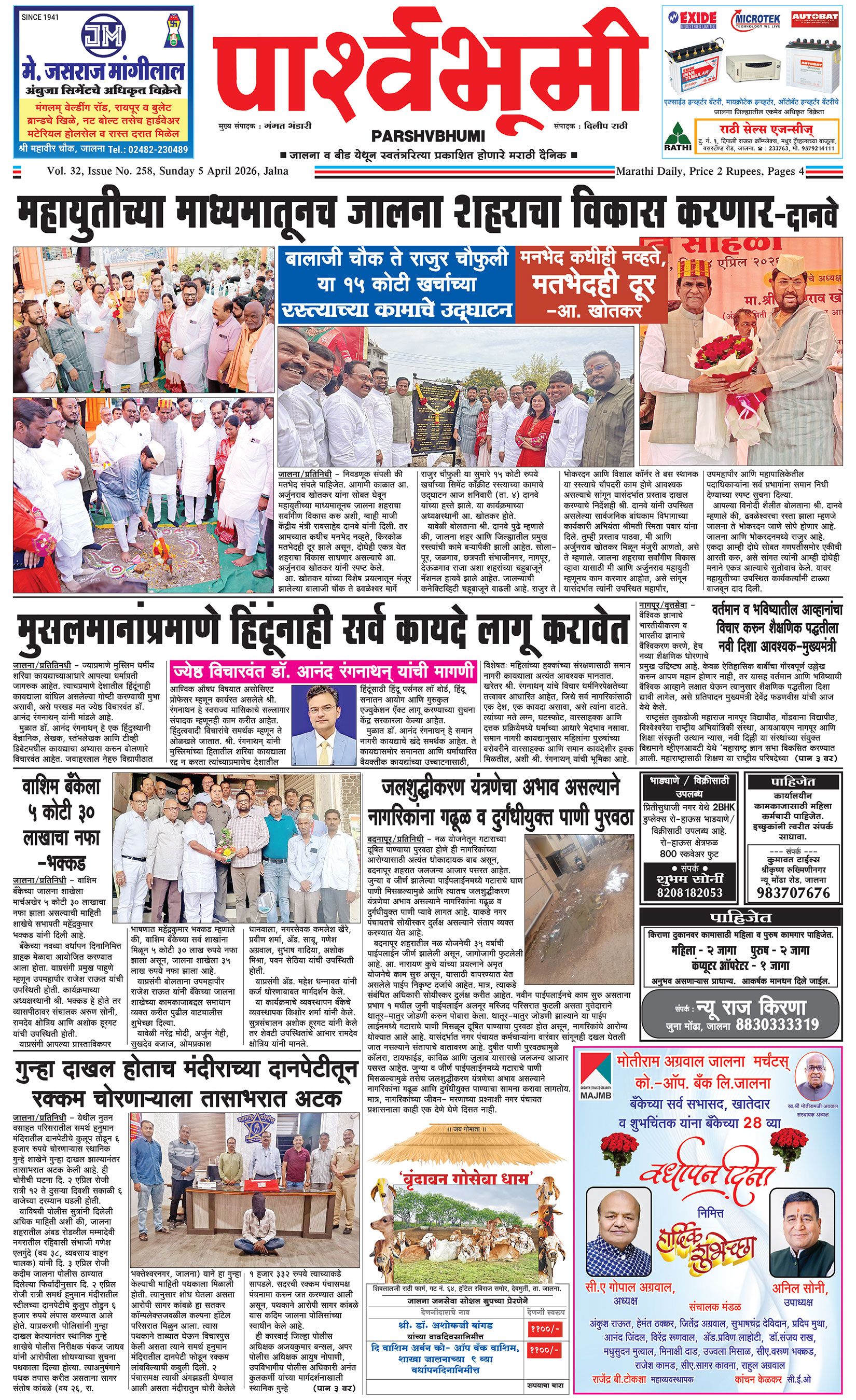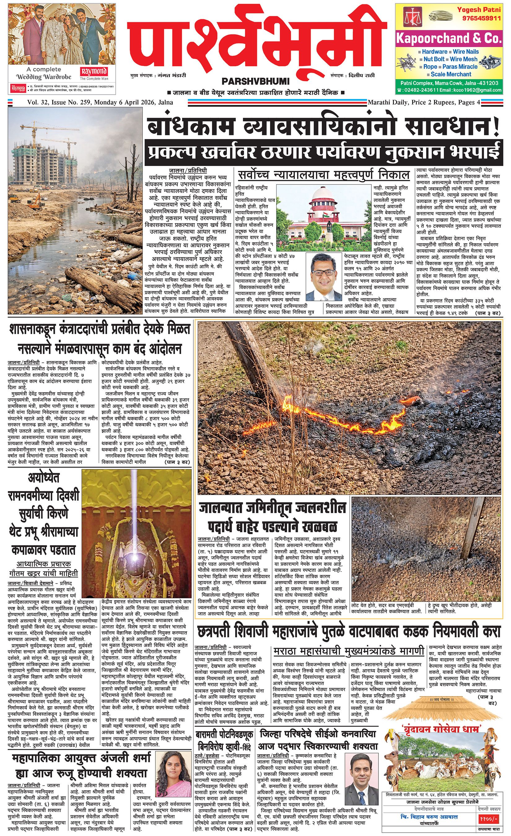 दैनिक पार्श्वभूमी | ‘विधाता’ बिल्डींग, आय. एम. ए. हॉलच्या पाठीमागे, प्रियदर्शनी कॉलनी, संभाजीनगर, जालना | ई-मेल : [email protected] | मो. 9860017155 Page 1 Page 2 Page 3 Page 4 Monday, 6 April 2026