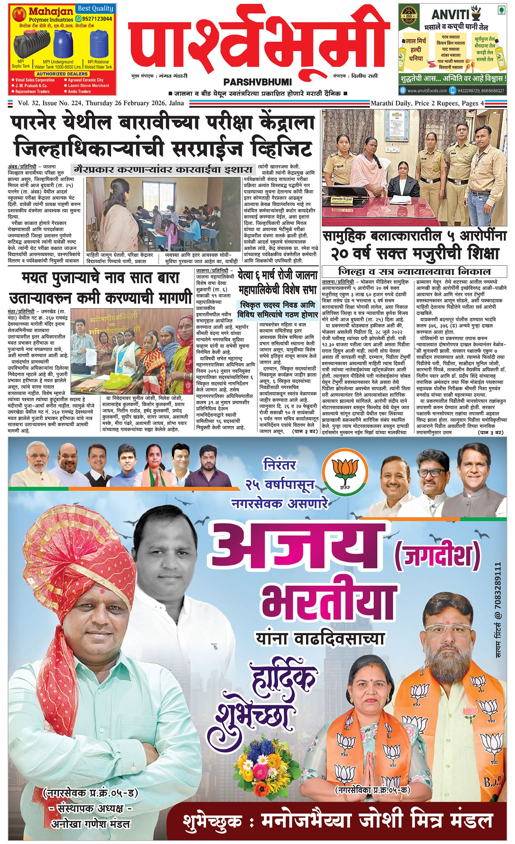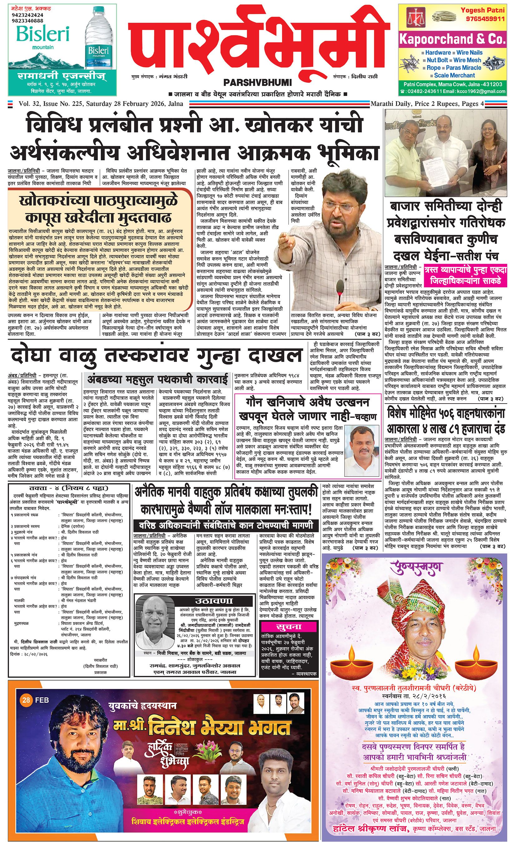 दैनिक पार्श्वभूमी | ‘विधाता’ बिल्डींग, आय. एम. ए. हॉलच्या पाठीमागे, प्रियदर्शनी कॉलनी, संभाजीनगर, जालना | ई-मेल : [email protected] | मो. 9860017155 Page 1 Page 2 Page 3 Page 4 Friday, 27 February 2026