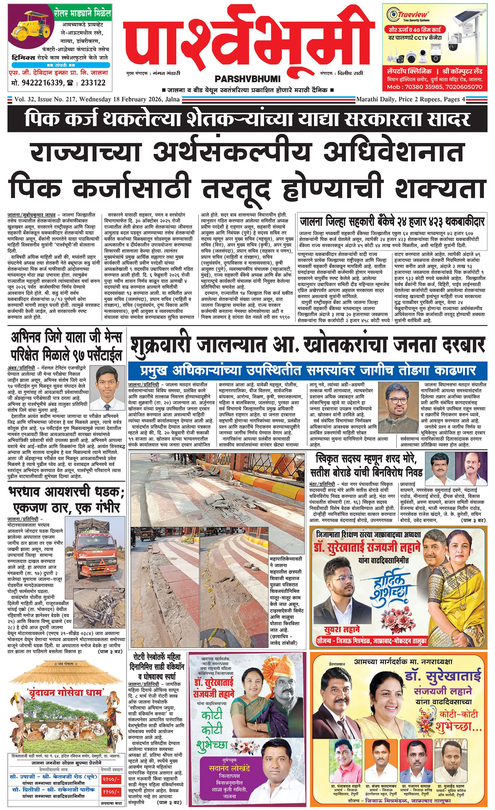 दैनिक पार्श्वभूमी | ‘विधाता’ बिल्डींग, आय. एम. ए. हॉलच्या पाठीमागे, प्रियदर्शनी कॉलनी, संभाजीनगर, जालना | ई-मेल : [email protected] | मो. 9860017155 Page 1 Page 2 Page 3 Page 4 Wednesday, 18 February 2026