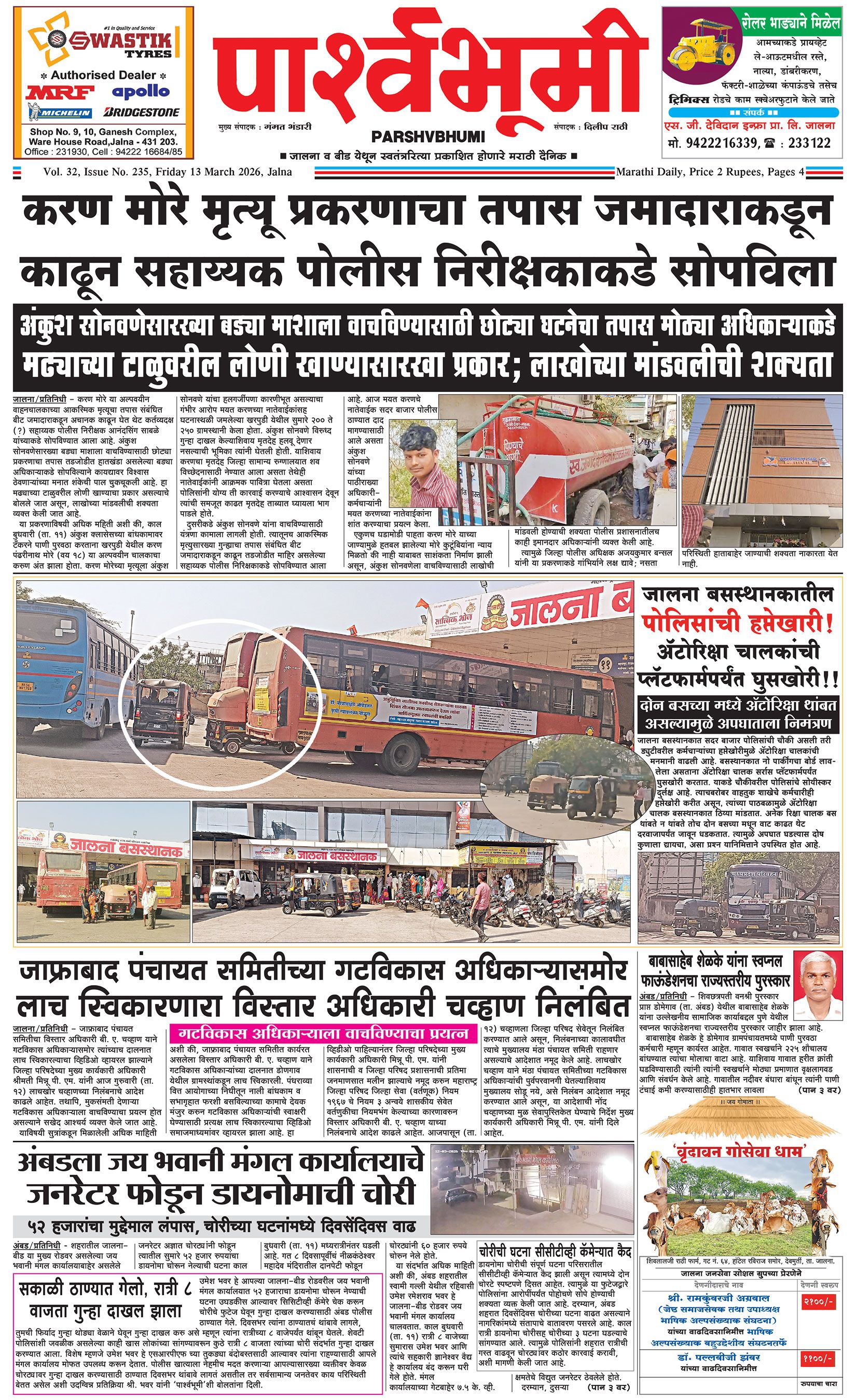 दैनिक पार्श्वभूमी | ‘विधाता’ बिल्डींग, आय. एम. ए. हॉलच्या पाठीमागे, प्रियदर्शनी कॉलनी, संभाजीनगर, जालना | ई-मेल : [email protected] | मो. 9860017155 Page 1 Page 2 Page 3 Page 4 Wednesday, 11 March 2026