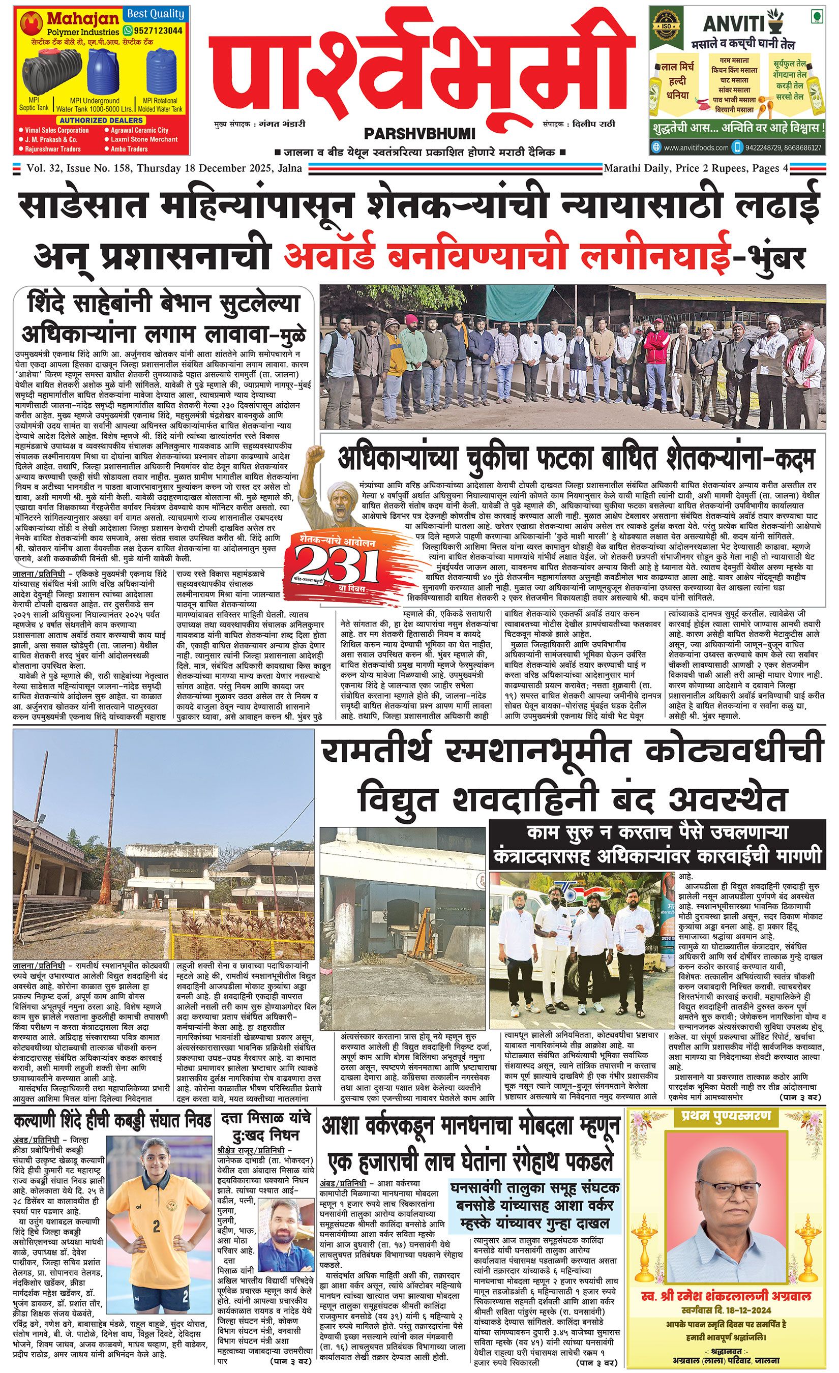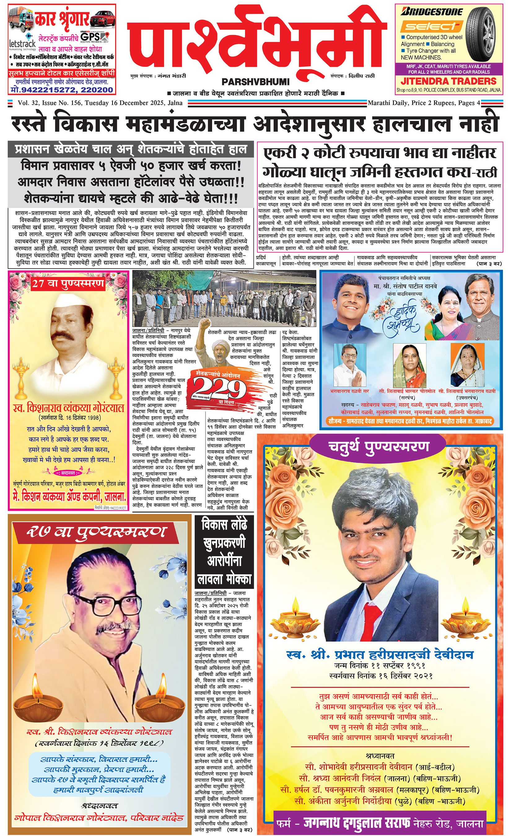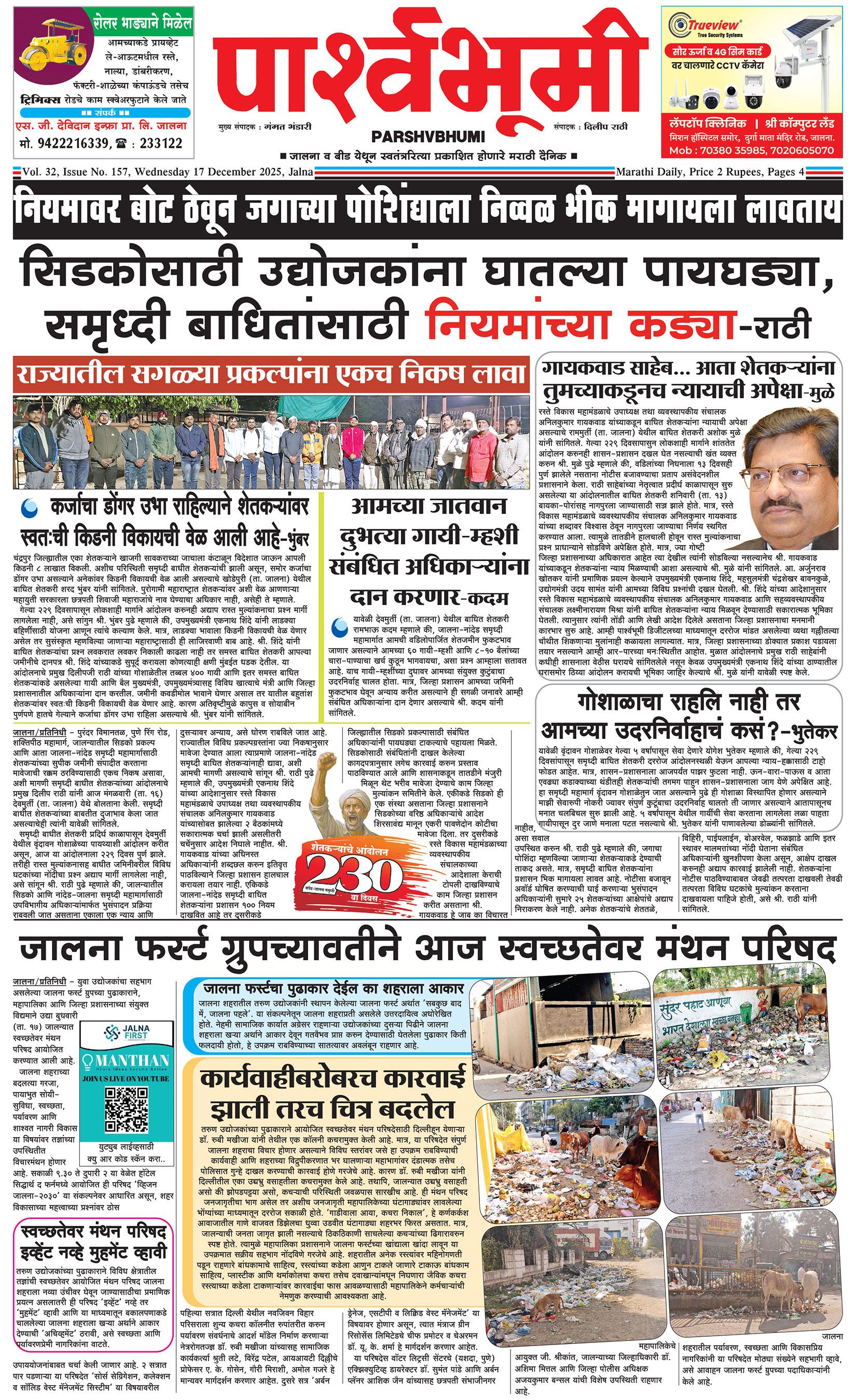 दैनिक पार्श्वभूमी | ‘विधाता’ बिल्डींग, आय. एम. ए. हॉलच्या पाठीमागे, प्रियदर्शनी कॉलनी, संभाजीनगर, जालना | ई-मेल : [email protected] | मो. 9860017155 Page 1 Page 2 Page 3 Page 4 Wednesday, 17 December 2025