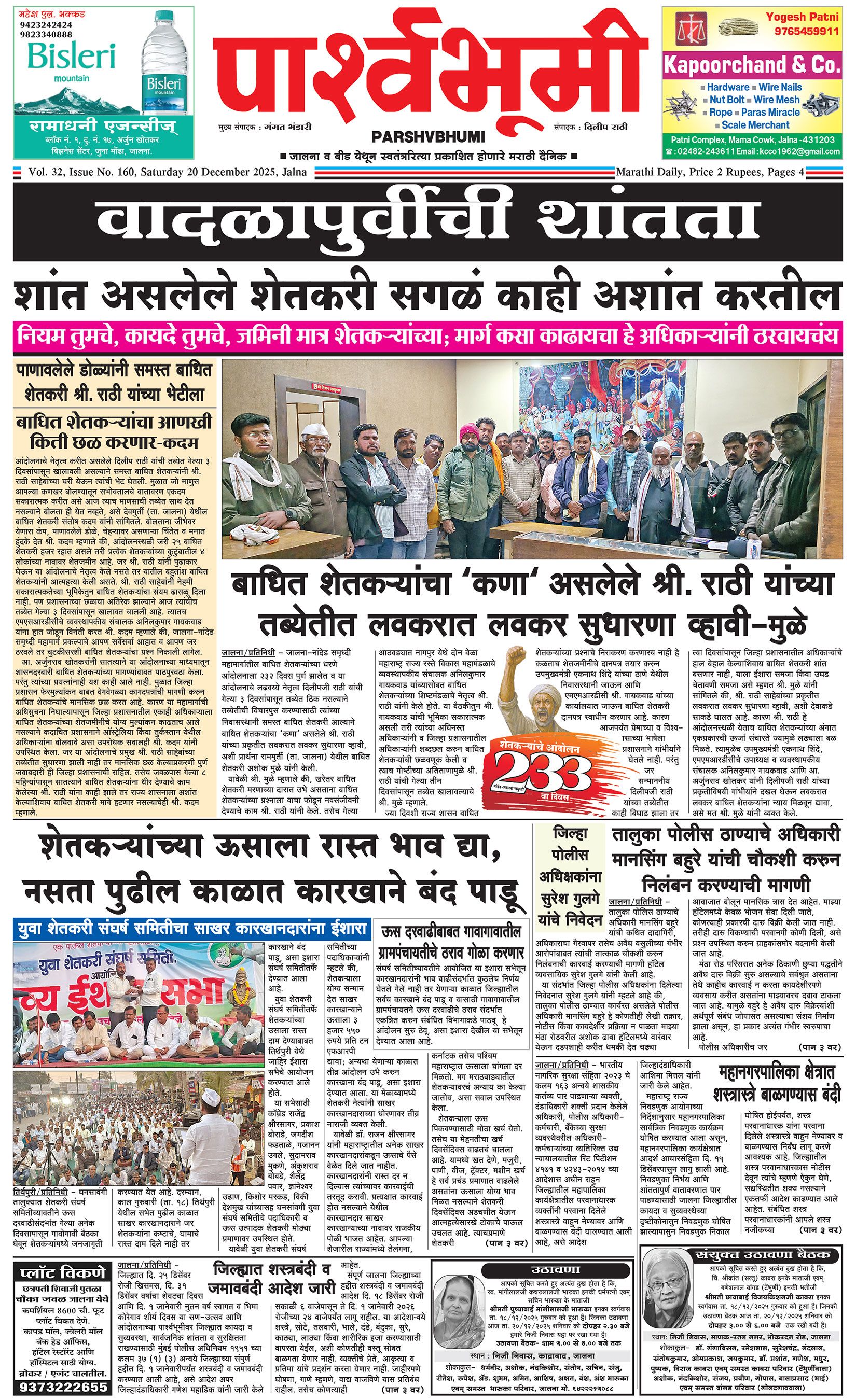 दैनिक पार्श्वभूमी | ‘विधाता’ बिल्डींग, आय. एम. ए. हॉलच्या पाठीमागे, प्रियदर्शनी कॉलनी, संभाजीनगर, जालना | ई-मेल : [email protected] | मो. 9860017155 Page 1 Page 2 Page 3 Page 4 Sunday, 21 December 2025