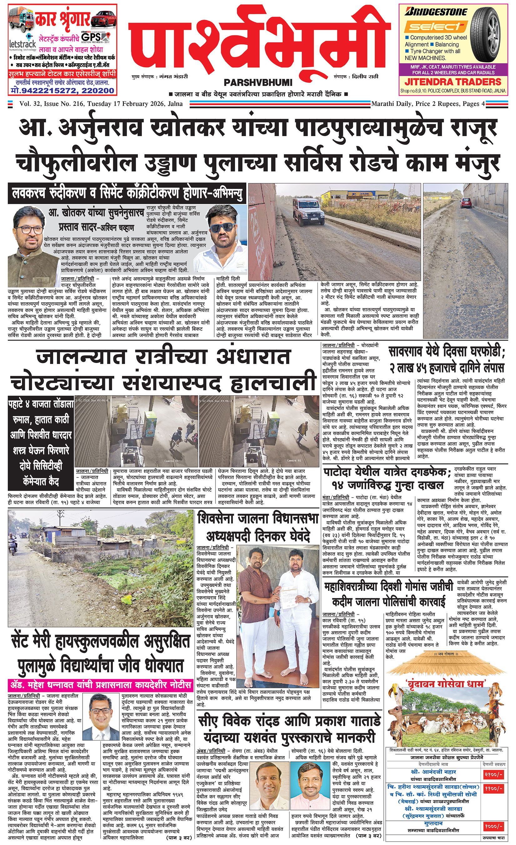 दैनिक पार्श्वभूमी | ‘विधाता’ बिल्डींग, आय. एम. ए. हॉलच्या पाठीमागे, प्रियदर्शनी कॉलनी, संभाजीनगर, जालना | ई-मेल : [email protected] | मो. 9860017155 Page 1 Page 2 Page 3 Page 4 Tuesday, 17 February 2026
