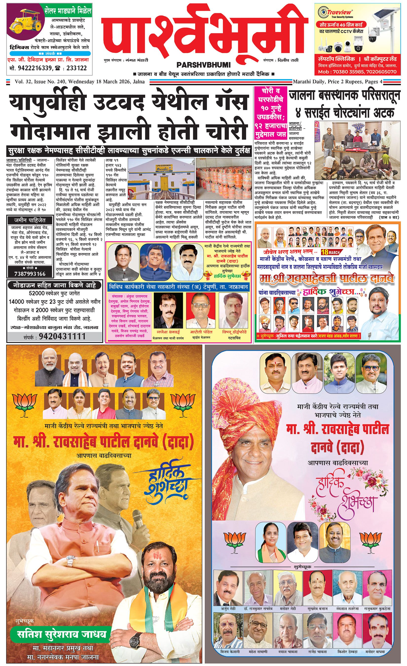 दैनिक पार्श्वभूमी | ‘विधाता’ बिल्डींग, आय. एम. ए. हॉलच्या पाठीमागे, प्रियदर्शनी कॉलनी, संभाजीनगर, जालना | ई-मेल : [email protected] | मो. 9860017155 Page 1 Page 2 Page 3 Page 4 Wednesday, 18 March 2026
