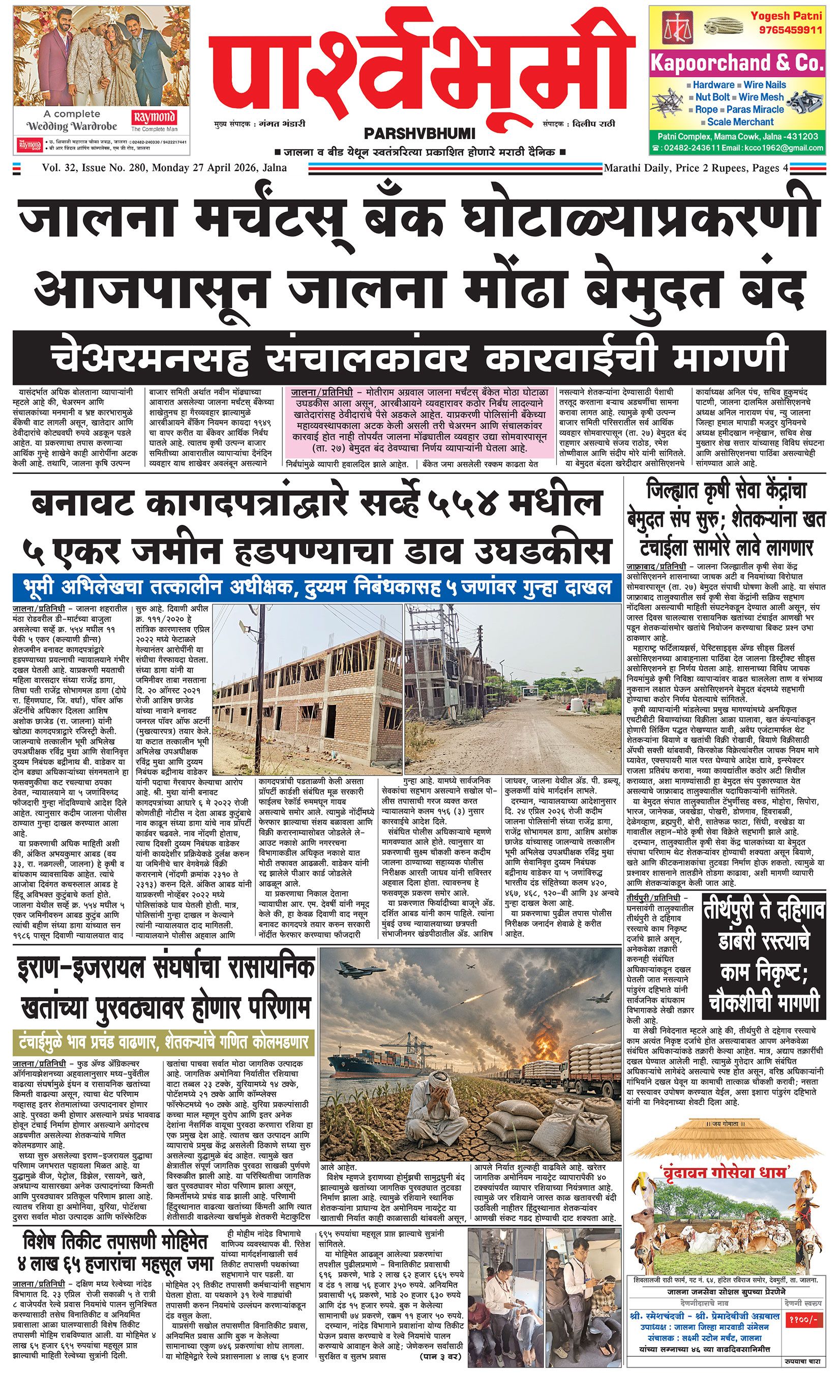 दैनिक पार्श्वभूमी | ‘विधाता’ बिल्डींग, आय. एम. ए. हॉलच्या पाठीमागे, प्रियदर्शनी कॉलनी, संभाजीनगर, जालना | ई-मेल : [email protected] | मो. 9860017155 Page 1 Page 2 Page 3 Page 4 Saturday, 25 April 2026