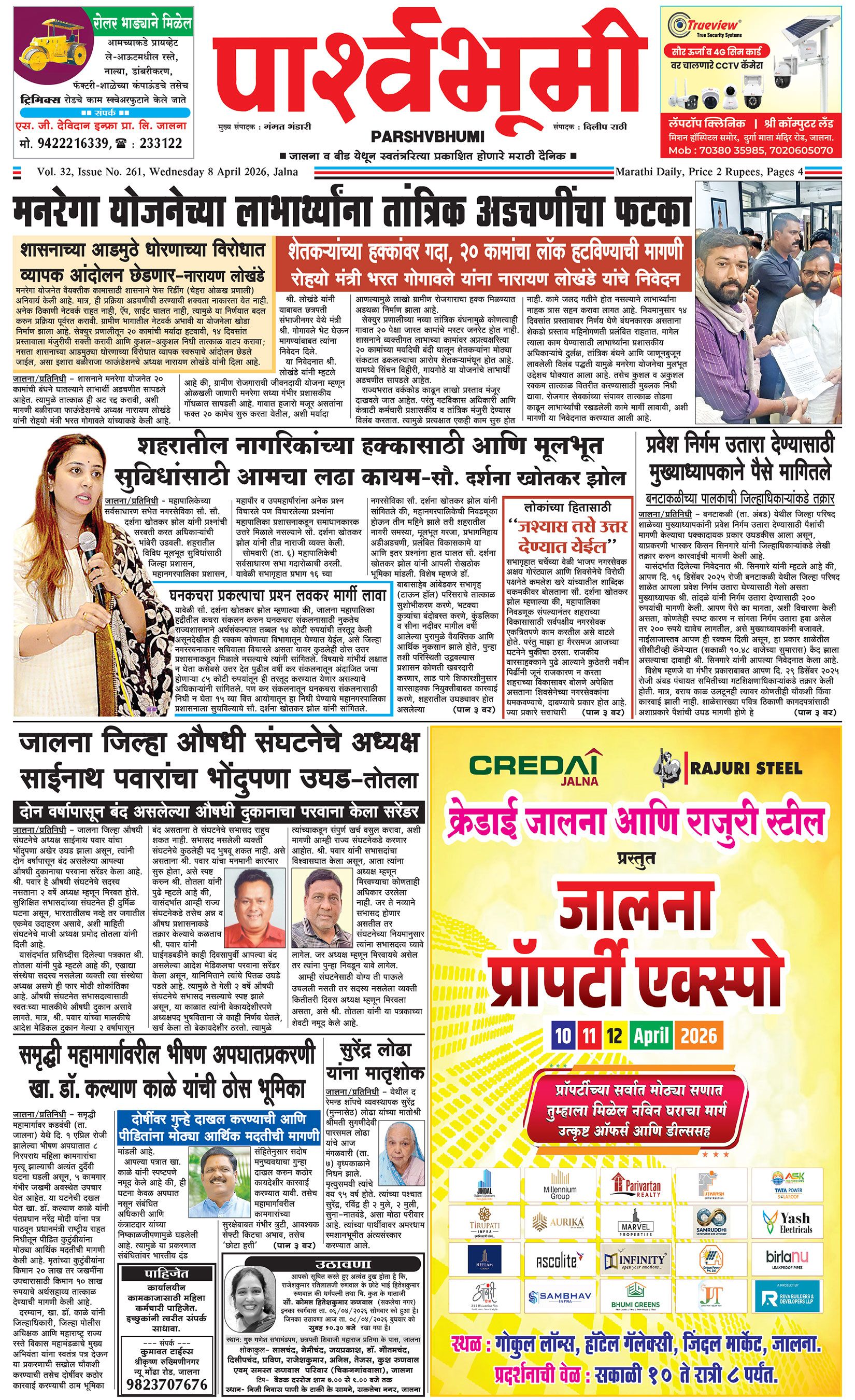 दैनिक पार्श्वभूमी | ‘विधाता’ बिल्डींग, आय. एम. ए. हॉलच्या पाठीमागे, प्रियदर्शनी कॉलनी, संभाजीनगर, जालना | ई-मेल : [email protected] | मो. 9860017155 Page 1 Page 2 Page 3 Page 4 Wednesday, 8 April 2026