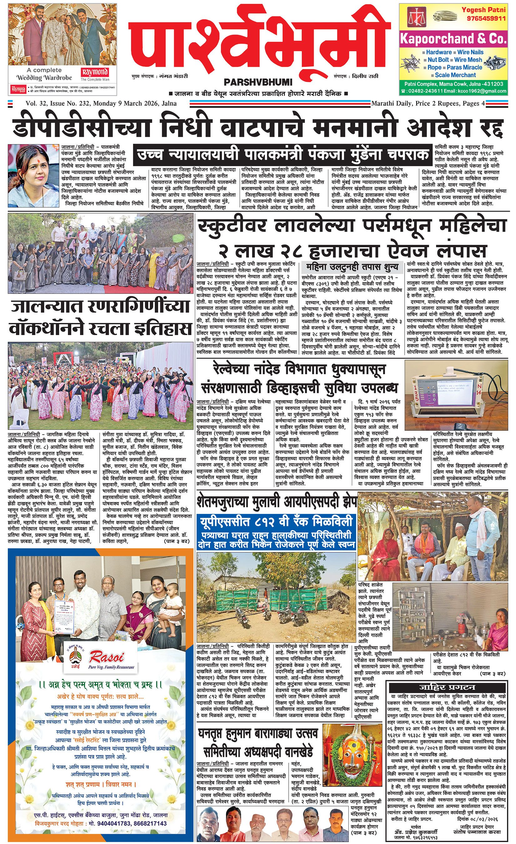 दैनिक पार्श्वभूमी | ‘विधाता’ बिल्डींग, आय. एम. ए. हॉलच्या पाठीमागे, प्रियदर्शनी कॉलनी, संभाजीनगर, जालना | ई-मेल : [email protected] | मो. 9860017155 Page 1 Page 2 Page 3 Page 4 Tuesday, 10 March 2026