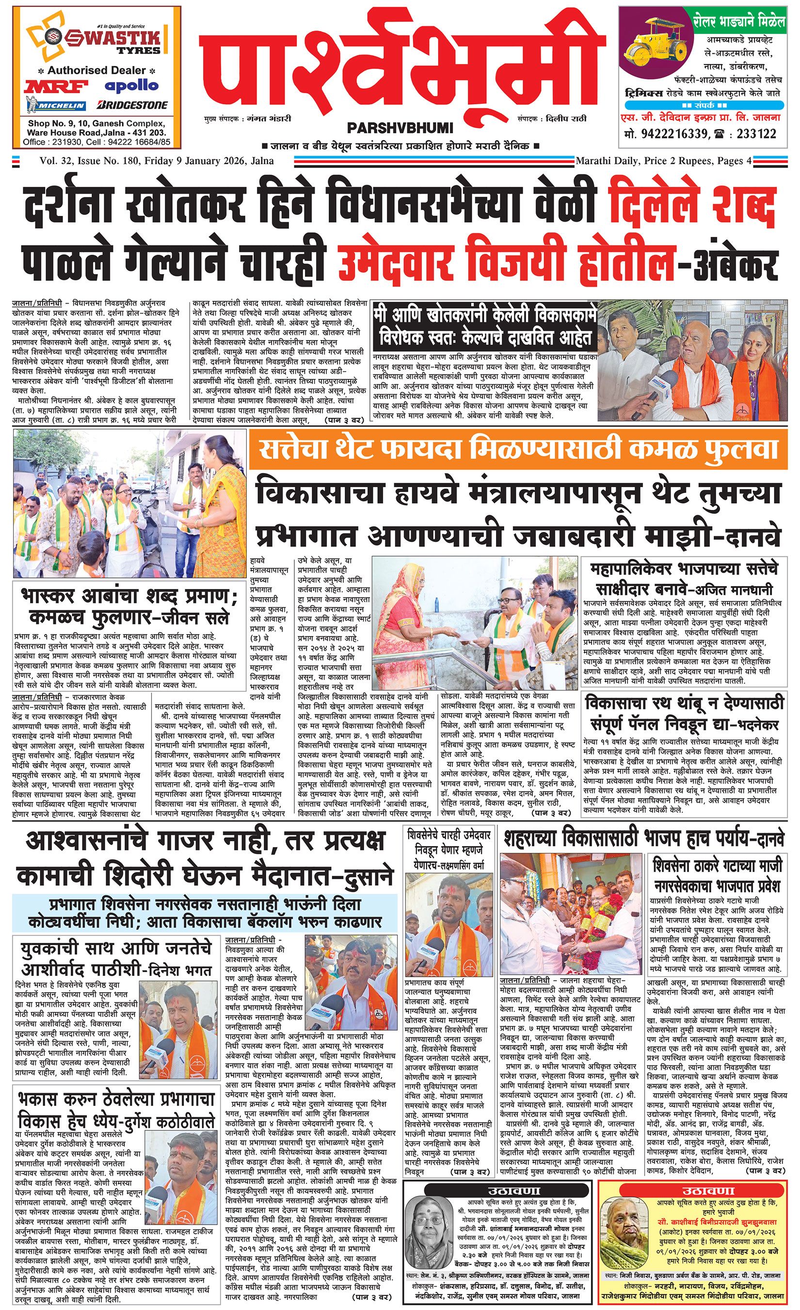 दैनिक पार्श्वभूमी | ‘विधाता’ बिल्डींग, आय. एम. ए. हॉलच्या पाठीमागे, प्रियदर्शनी कॉलनी, संभाजीनगर, जालना | ई-मेल : [email protected] | मो. 9860017155 Page 1 Page 2 Page 3 Page 4 Saturday, 10 January 2026