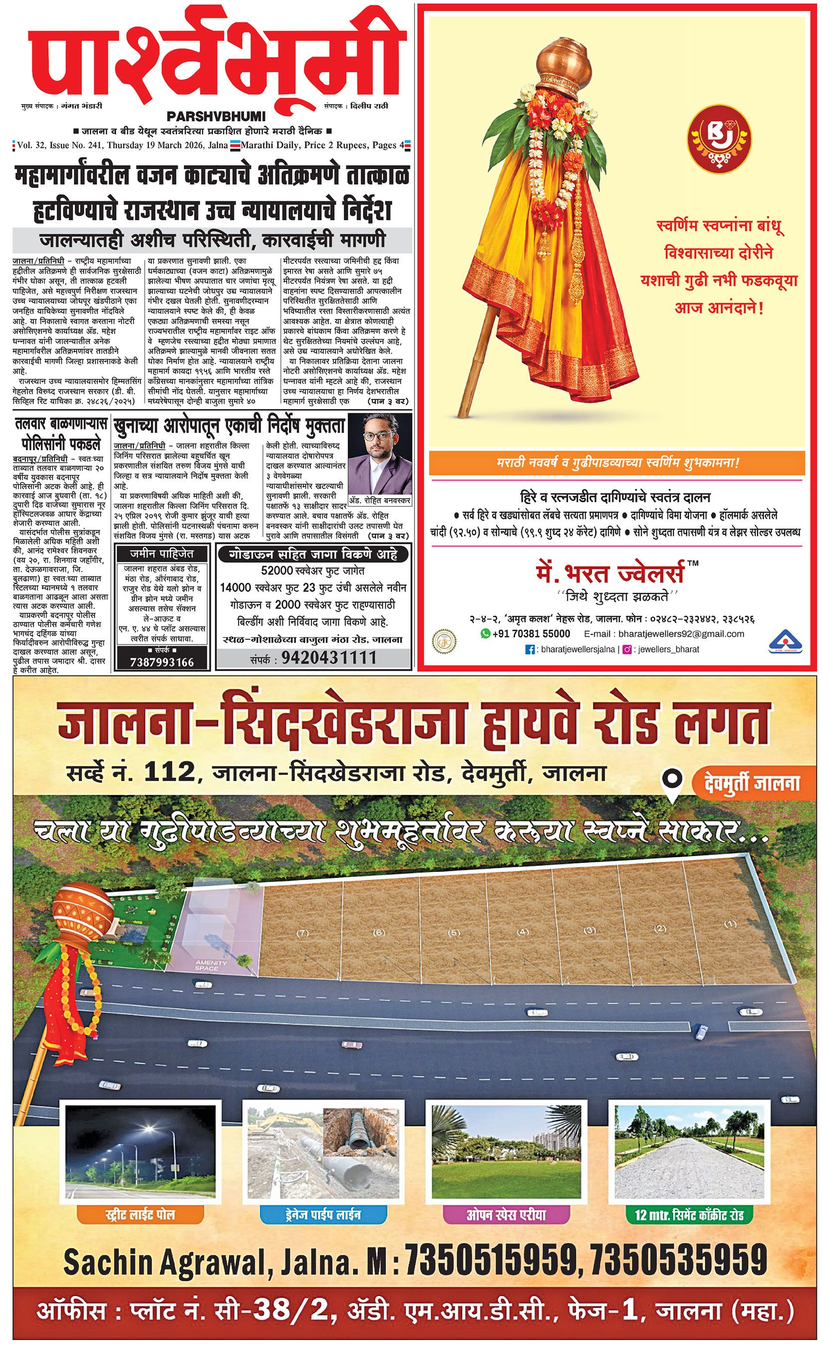 दैनिक पार्श्वभूमी | ‘विधाता’ बिल्डींग, आय. एम. ए. हॉलच्या पाठीमागे, प्रियदर्शनी कॉलनी, संभाजीनगर, जालना | ई-मेल : [email protected] | मो. 9860017155 Page 1 Page 2 Page 3 Page 4 Thursday, 19 March 2026