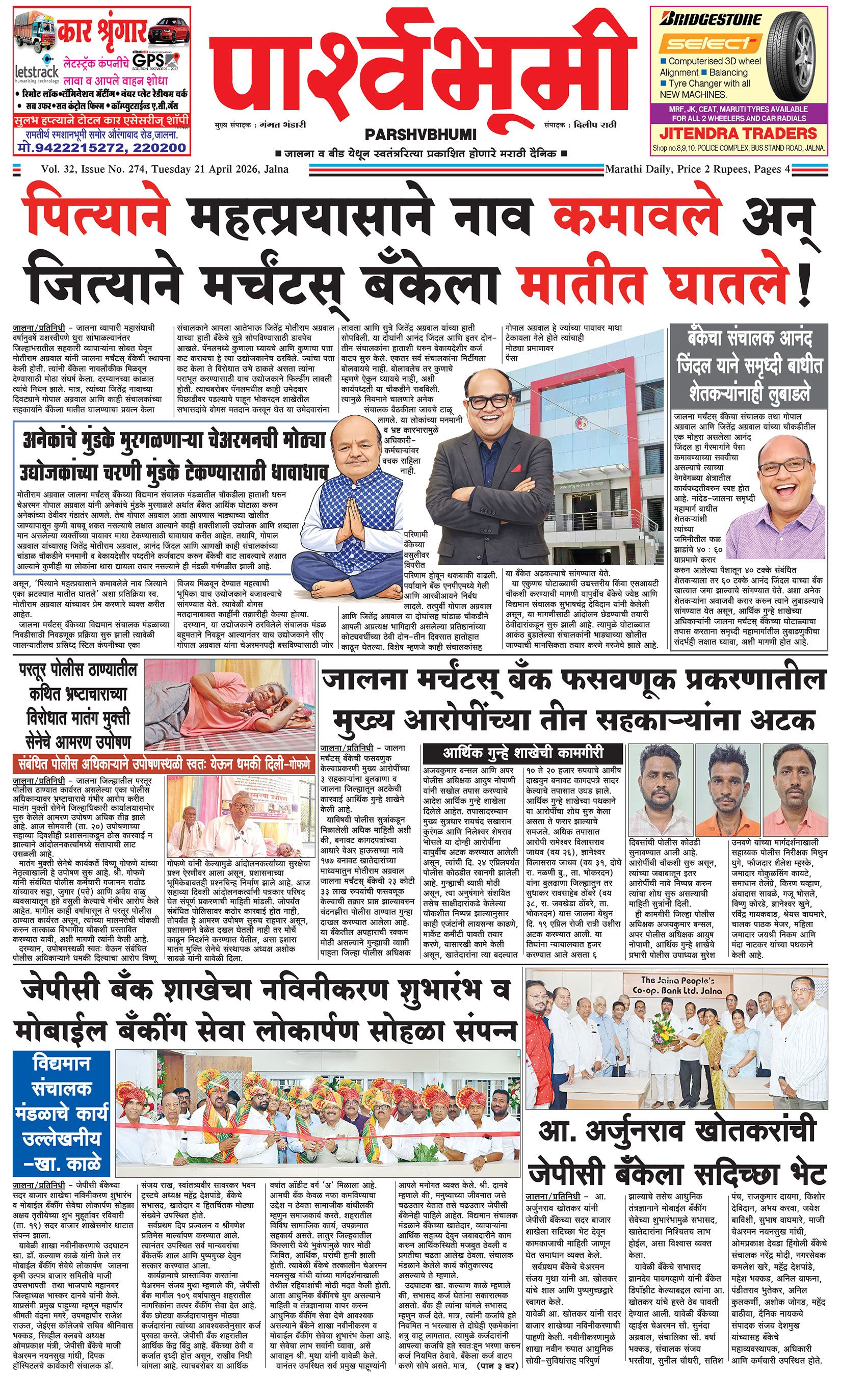 दैनिक पार्श्वभूमी | ‘विधाता’ बिल्डींग, आय. एम. ए. हॉलच्या पाठीमागे, प्रियदर्शनी कॉलनी, संभाजीनगर, जालना | ई-मेल : [email protected] | मो. 9860017155 Page 1 Page 2 Page 3 Page 4 Monday, 20 April 2026