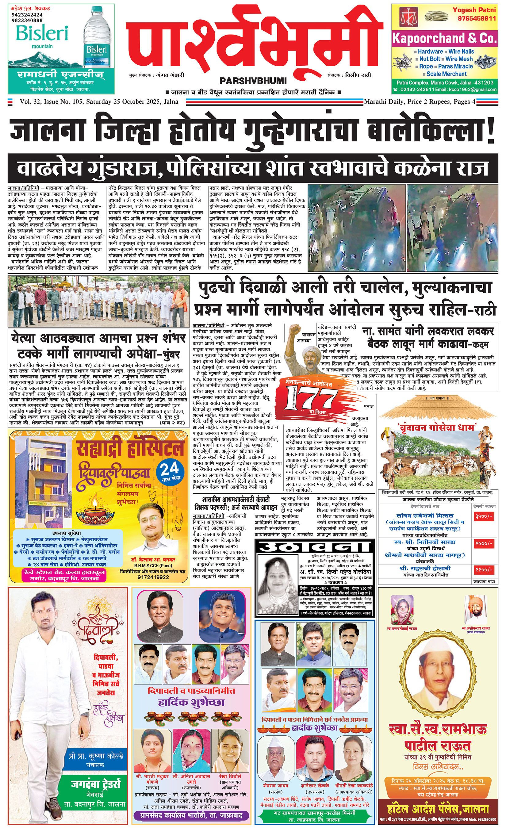 दैनिक पार्श्वभूमी | ‘विधाता’ बिल्डींग, आय. एम. ए. हॉलच्या पाठीमागे, प्रियदर्शनी कॉलनी, संभाजीनगर, जालना | ई-मेल : [email protected] | मो. 9860017155 Page 1 Page 2 Page 3 Page 4 Friday, 24 October 2025