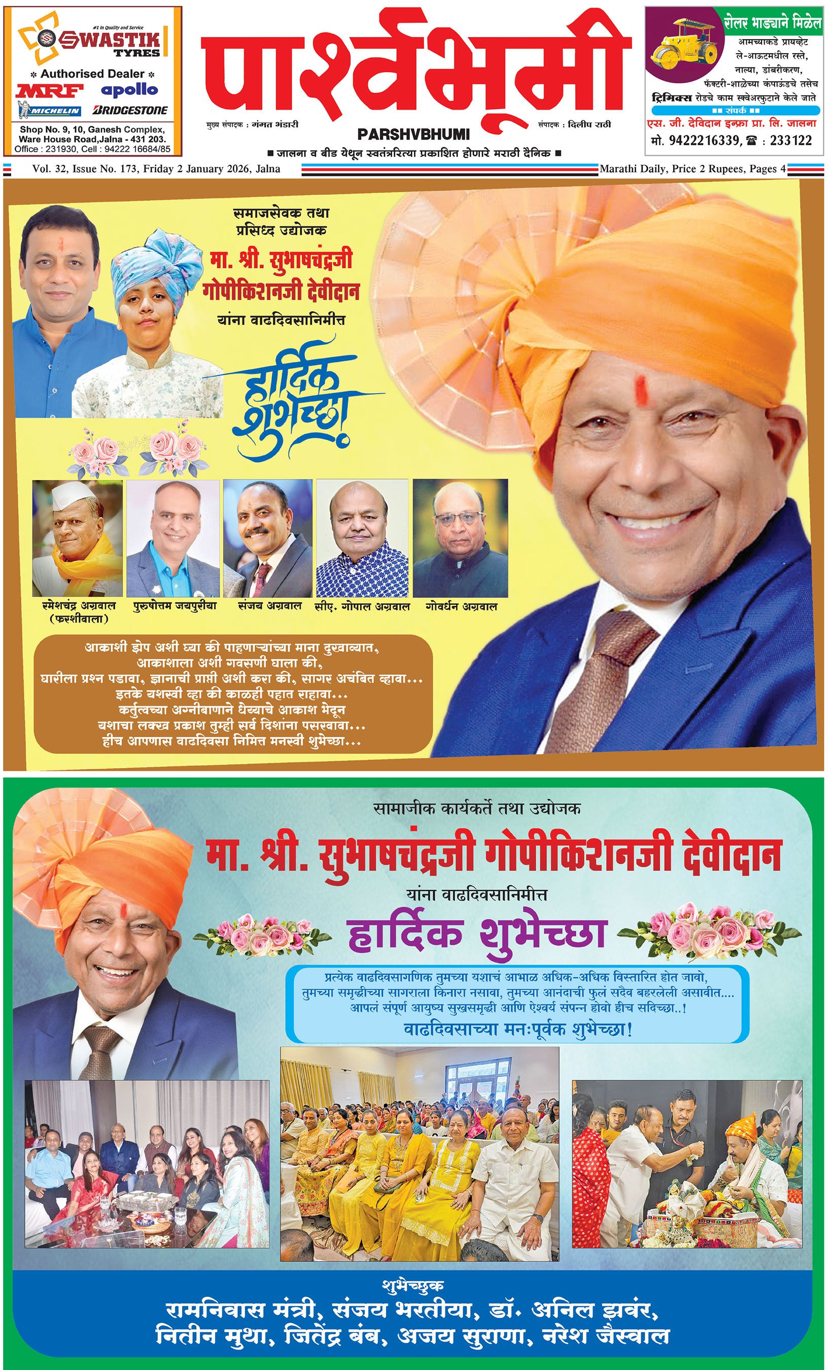 दैनिक पार्श्वभूमी | ‘विधाता’ बिल्डींग, आय. एम. ए. हॉलच्या पाठीमागे, प्रियदर्शनी कॉलनी, संभाजीनगर, जालना | ई-मेल : [email protected] | मो. 9860017155 Page 1 Page 2 Page 3 Page 4 Thursday, 1 January 2026